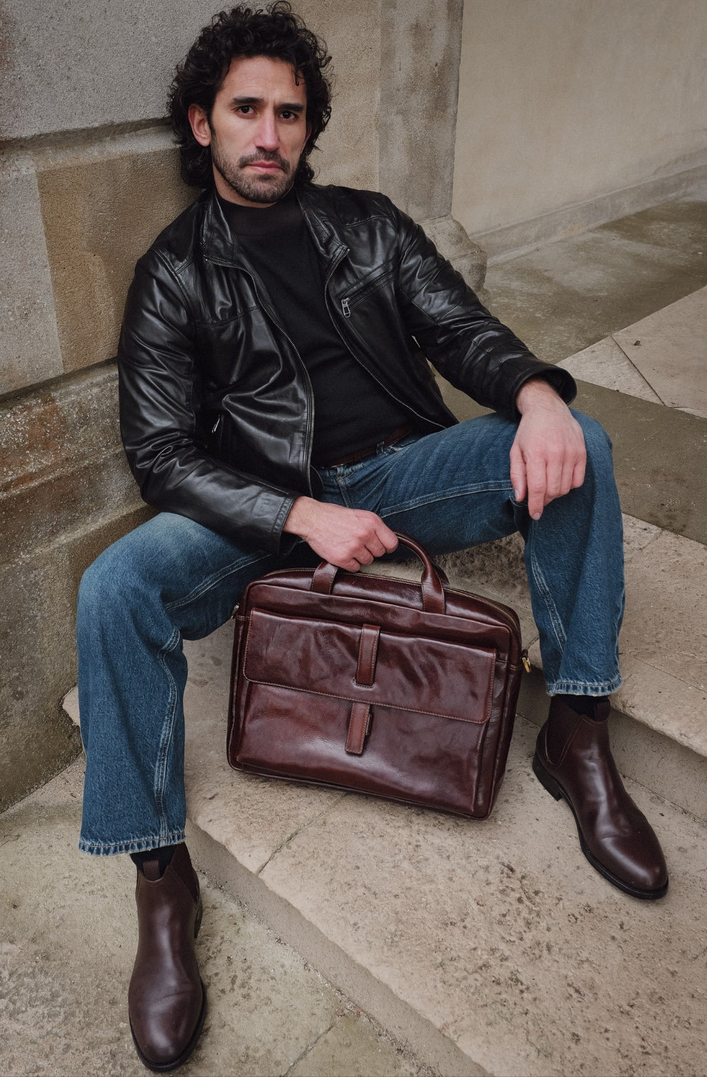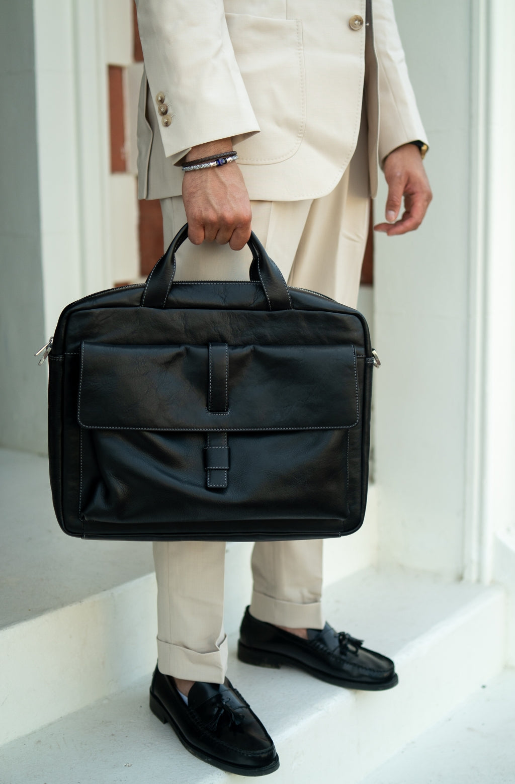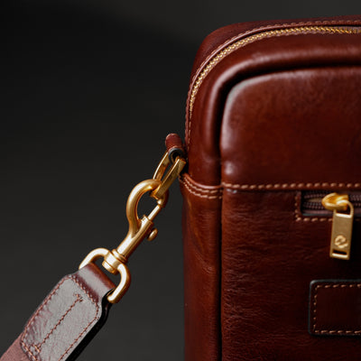 Time Resistance trabaja cuero italiano Vachetta: plena flor, curtido vegetal y teñido a mano. Con el uso adquiere una pátina elegante y única.