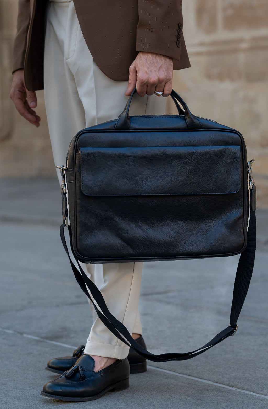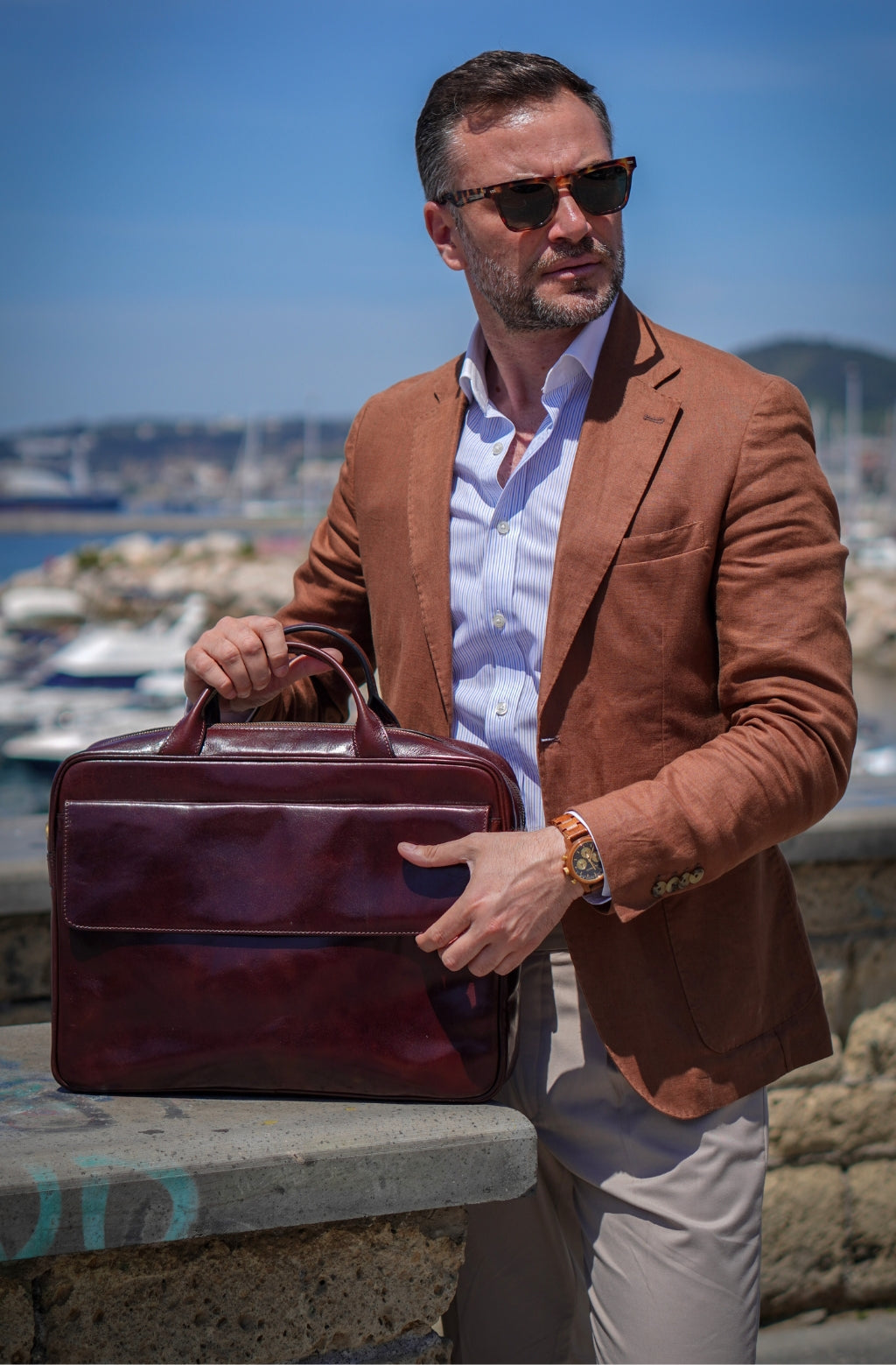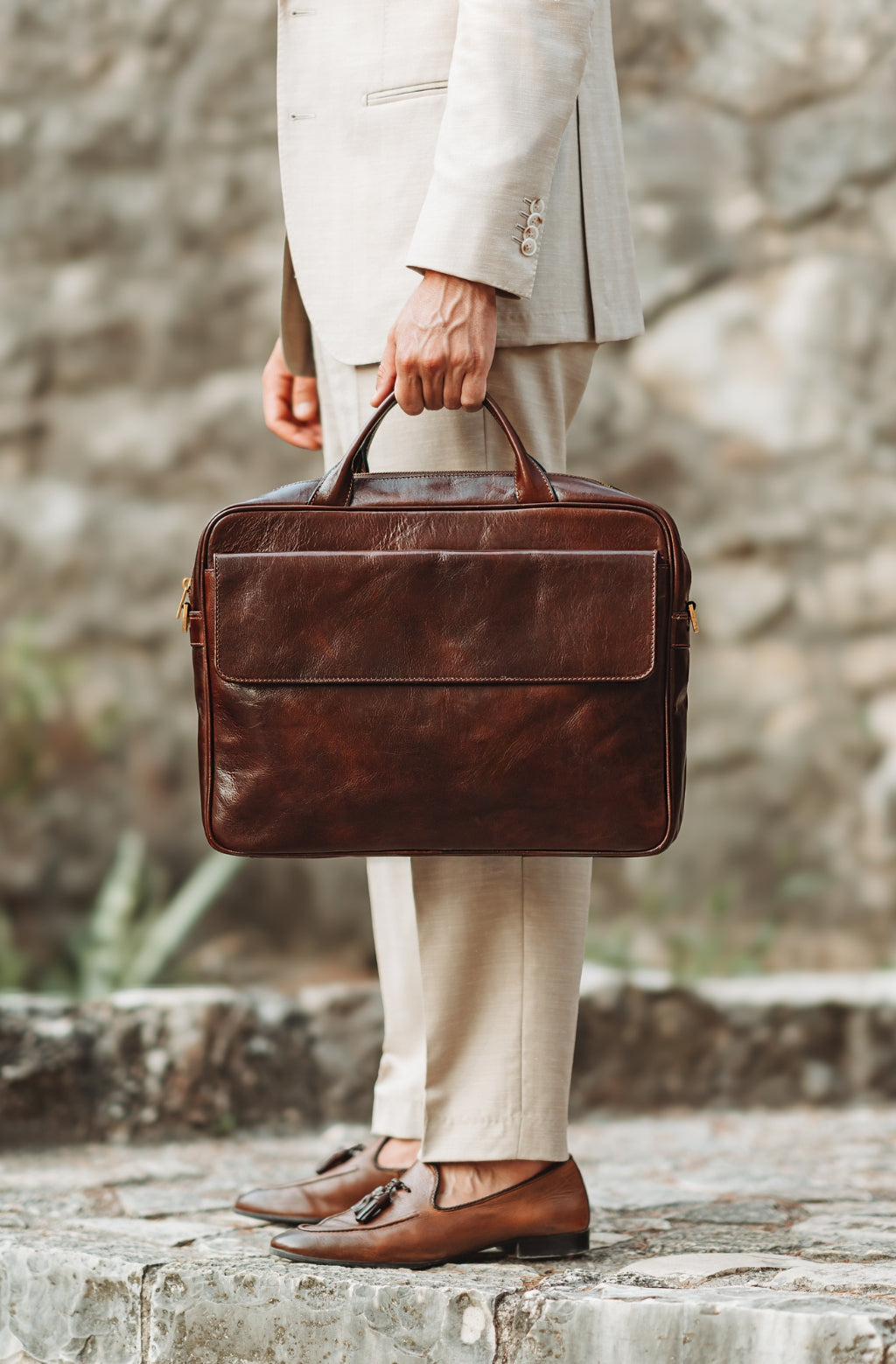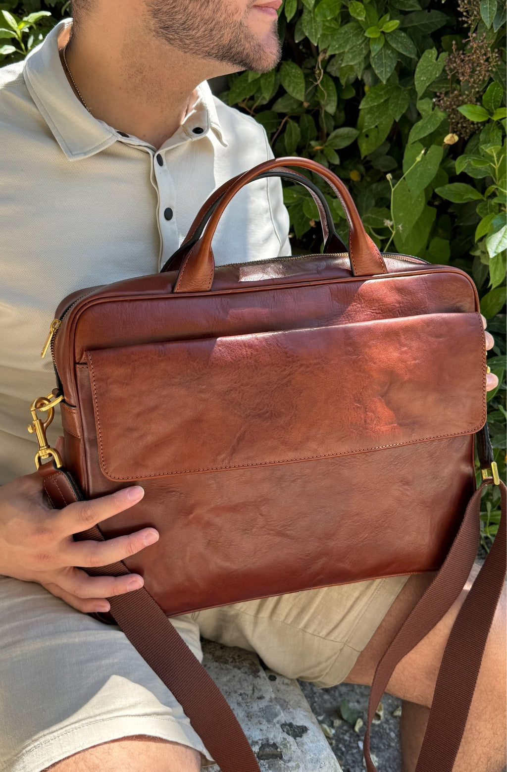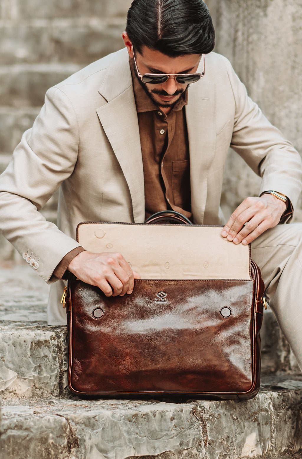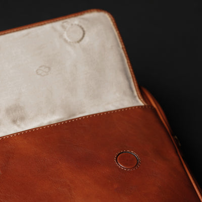 Time Resistance trabaja cuero italiano Vachetta: plena flor, curtido vegetal y teñido a mano. Con el uso adquiere una pátina elegante y única.