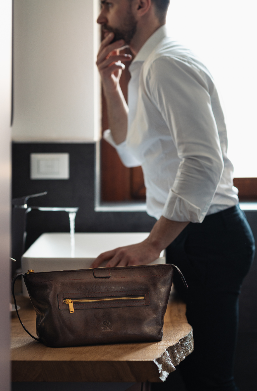 Time Resistance trabaja cuero italiano Vachetta: plena flor, curtido vegetal y teñido a mano. Con el uso adquiere una pátina elegante y única.