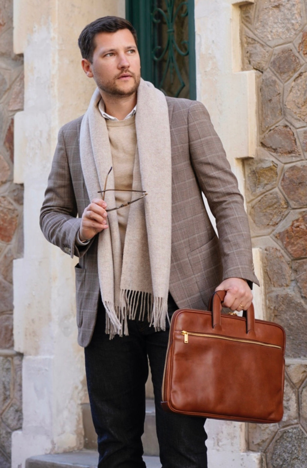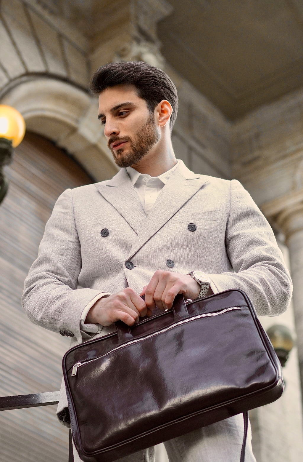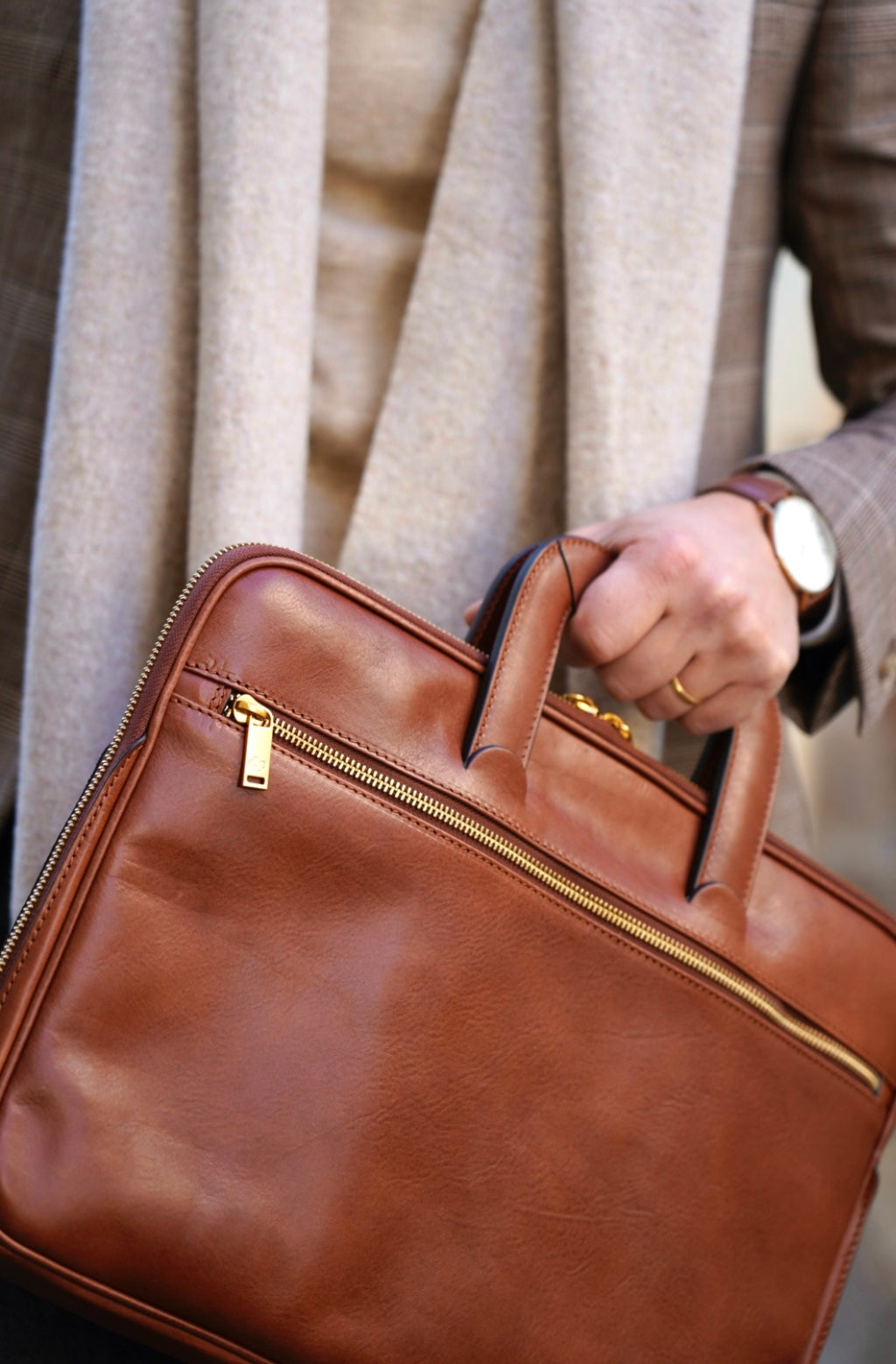 Un maletín de cuero de plena flor que expresa la perfecta armonía entre dureza y suavidad. El cuero de primera calidad teñido a mano le da un aire sentimental, pero las líneas transmiten un ligero toque de modernidad. Atemporal y actual. Masculino y femenino. Practicidad urbana con carisma.