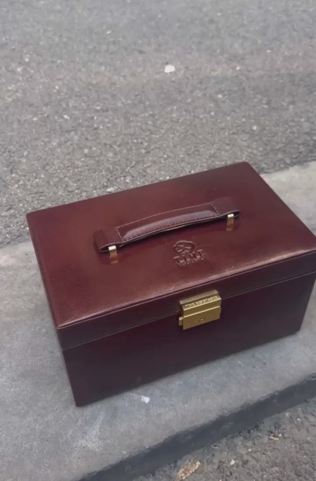 Nuestro joyero de cuero de aspecto de la realeza aportará un toque de lujo a su tocador. Con un aroma de elegancia italiana, este joyero proporcionará un hogar seguro a sus valiosos accesorios. Forrado con suave tejido para proteger las joyas delicadas y los metales preciosos. Organice y proteja sus joyas.