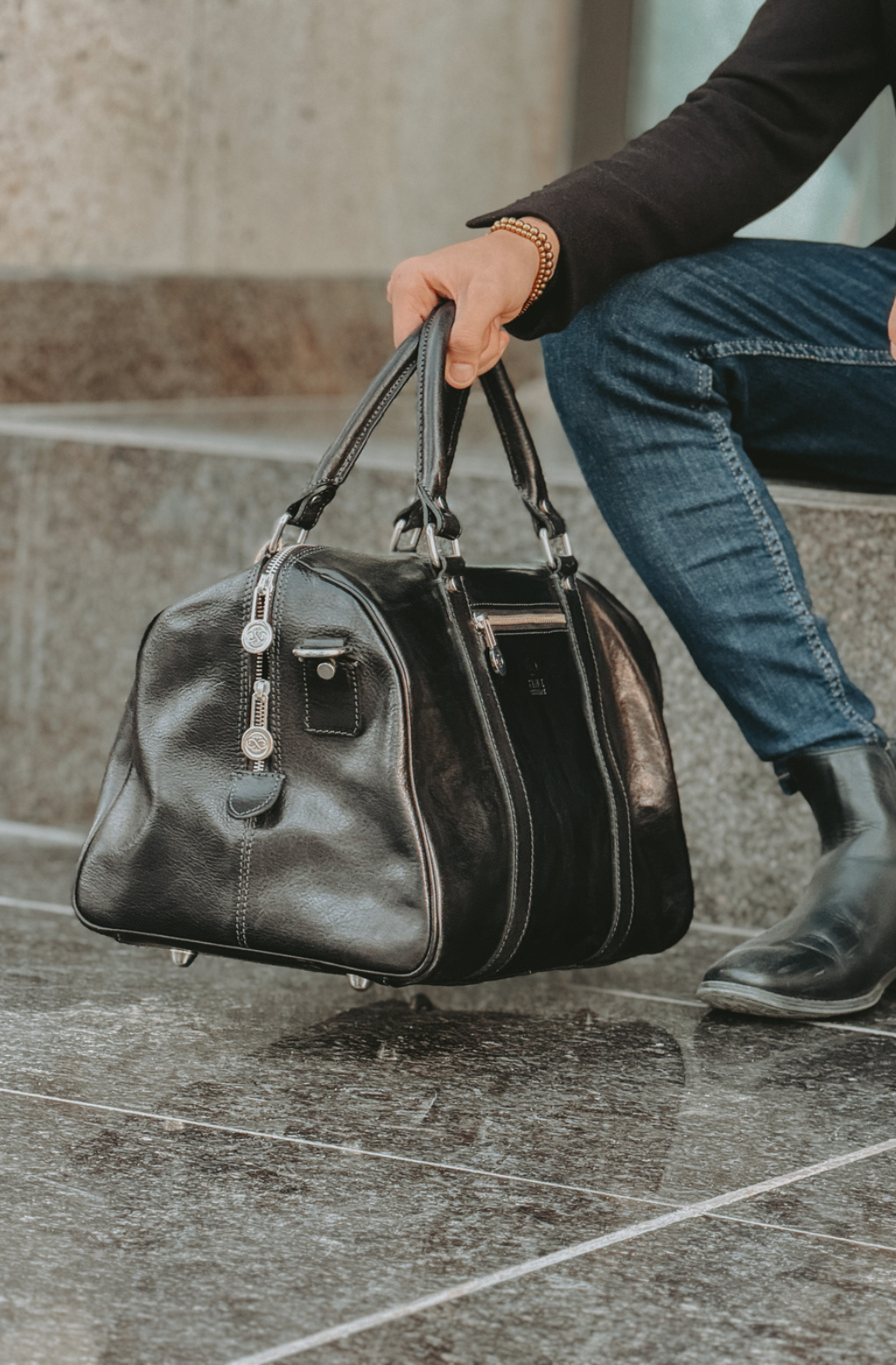Time Resistance trabaja cuero italiano Vachetta: plena flor, curtido vegetal y teñido a mano. Con el uso adquiere una pátina elegante y única.