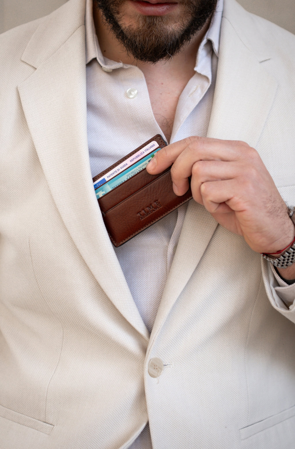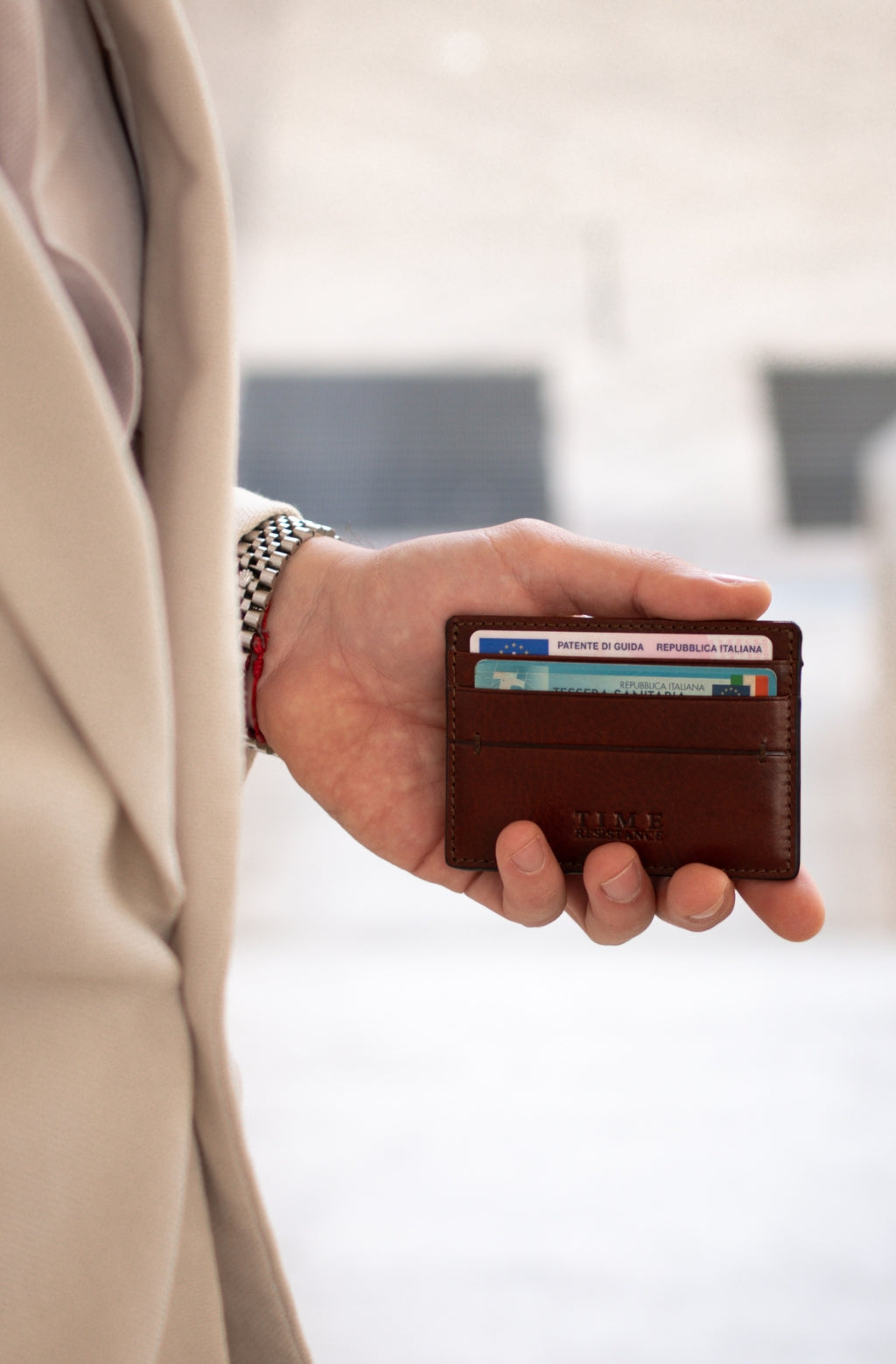 Time Resistance trabaja cuero italiano Vachetta: plena flor, curtido vegetal y teñido a mano. Con el uso adquiere una pátina elegante y única.