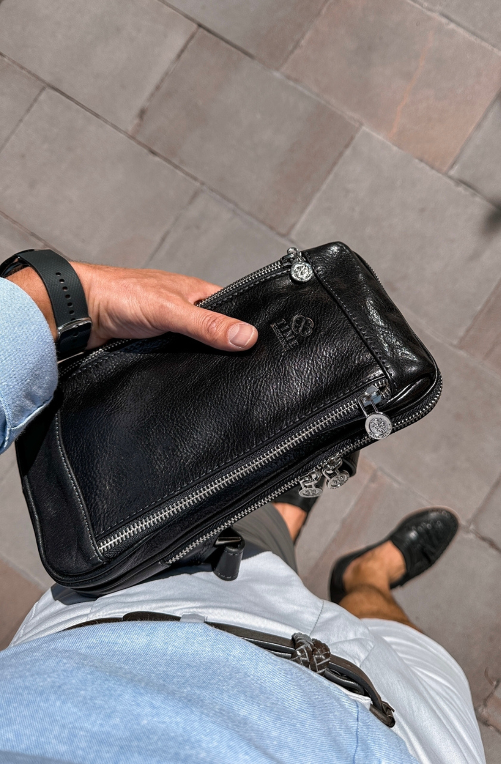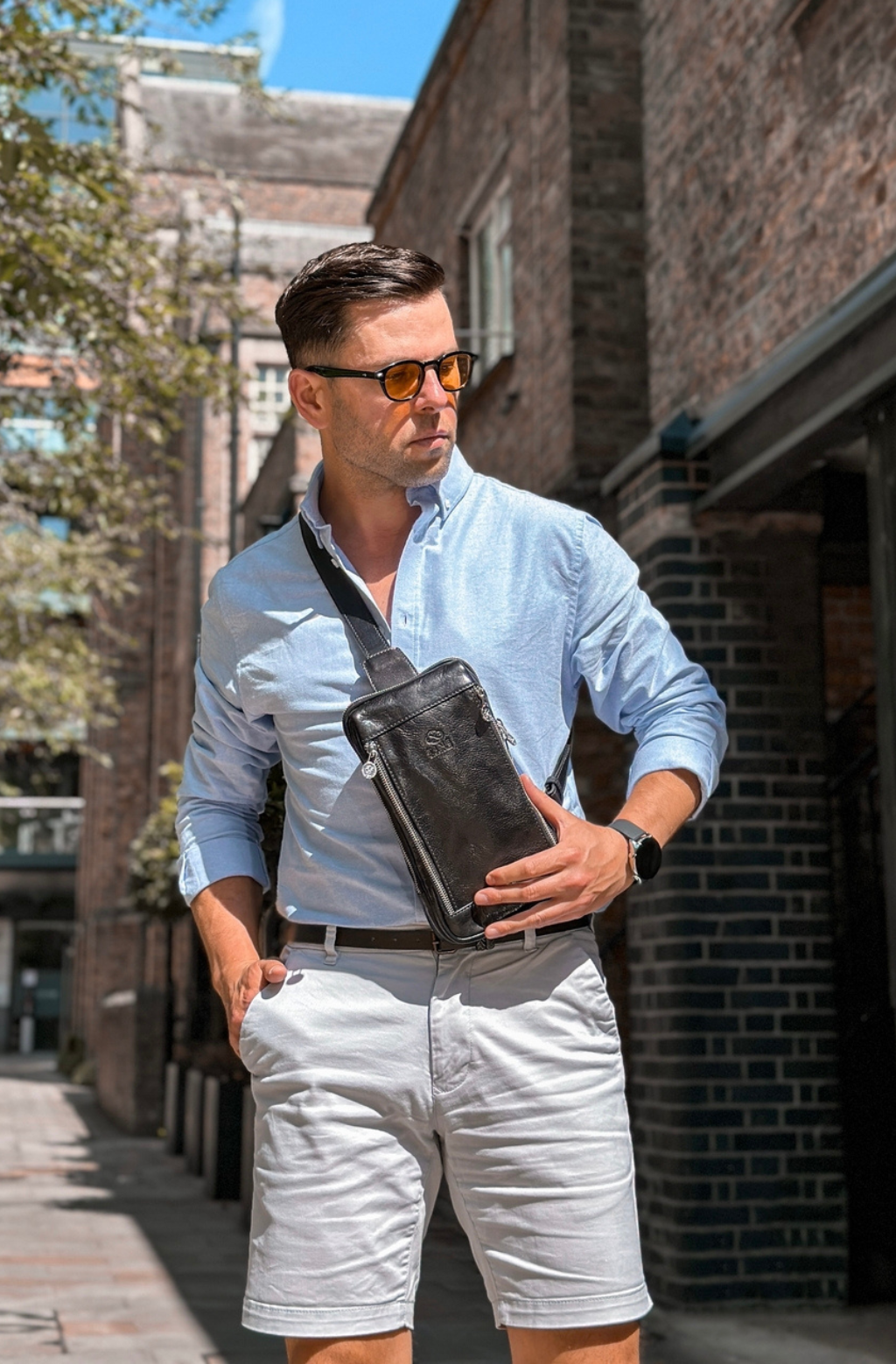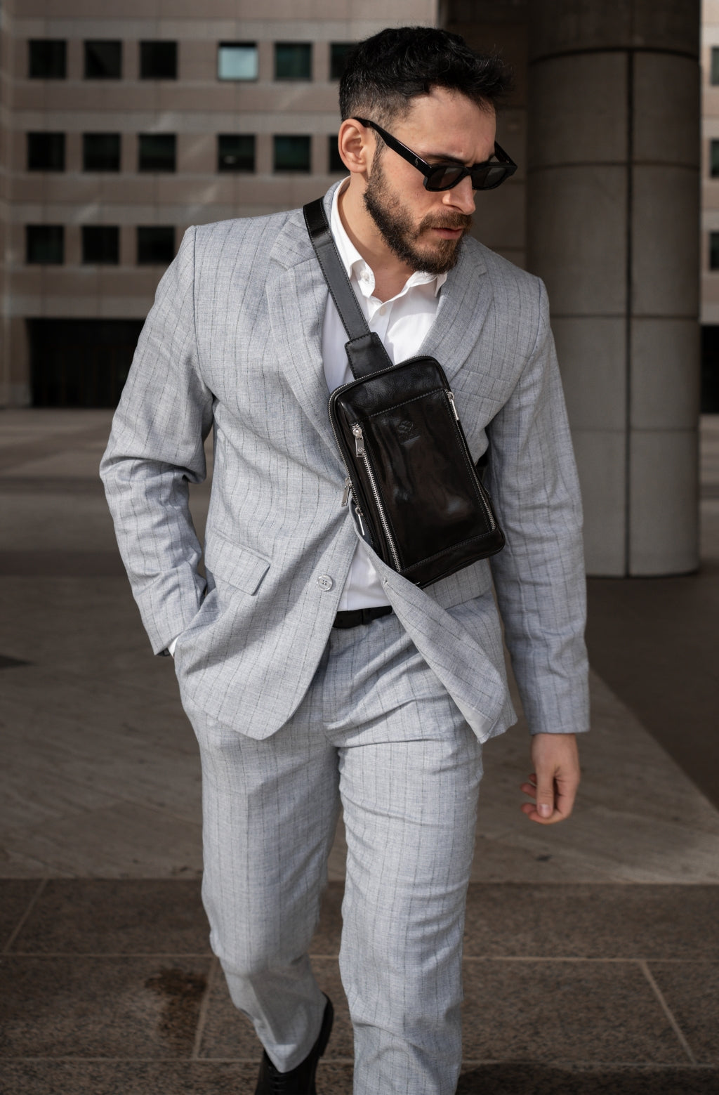 Esta sling bag de cuero italiano se ha diseñado para maximizar la comodidad a la hora de viajar. Nuestra riñonera cruzada Kim de cuero de plena flor puede llevarse en el pecho y en la espalda. Bien cerca del cuerpo, la riñonera de primera calidad no limita los movimientos ni el espíritu viajero.
