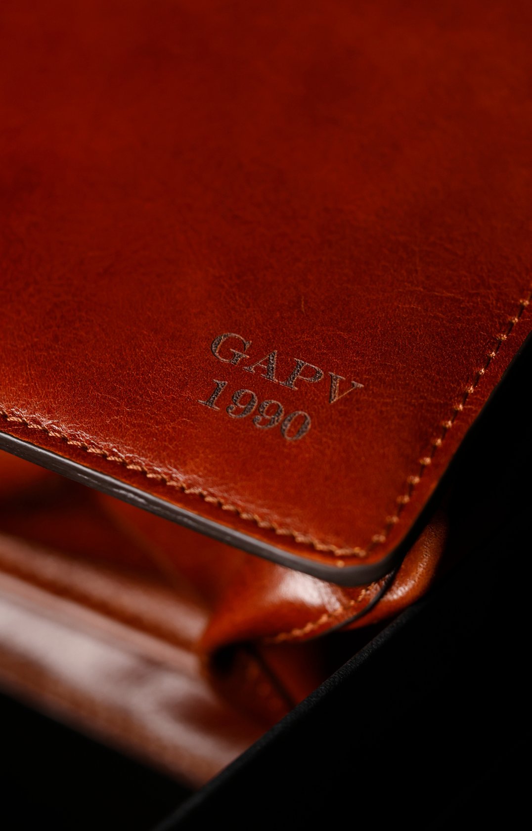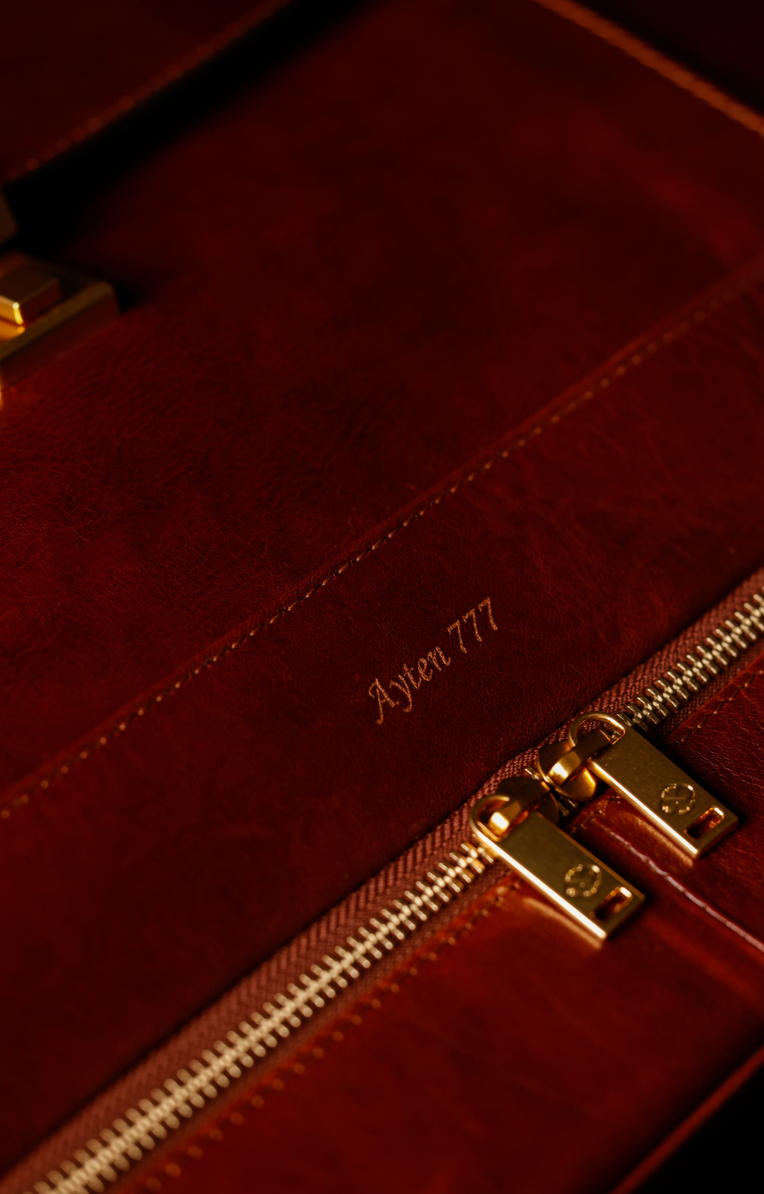 El grabado láser reacciona con la superficie del cuero, produciendo un tono único cada vez, según el color del cuero. El color del grabado lo determina el propio cuero y no puede elegirse libremente.
