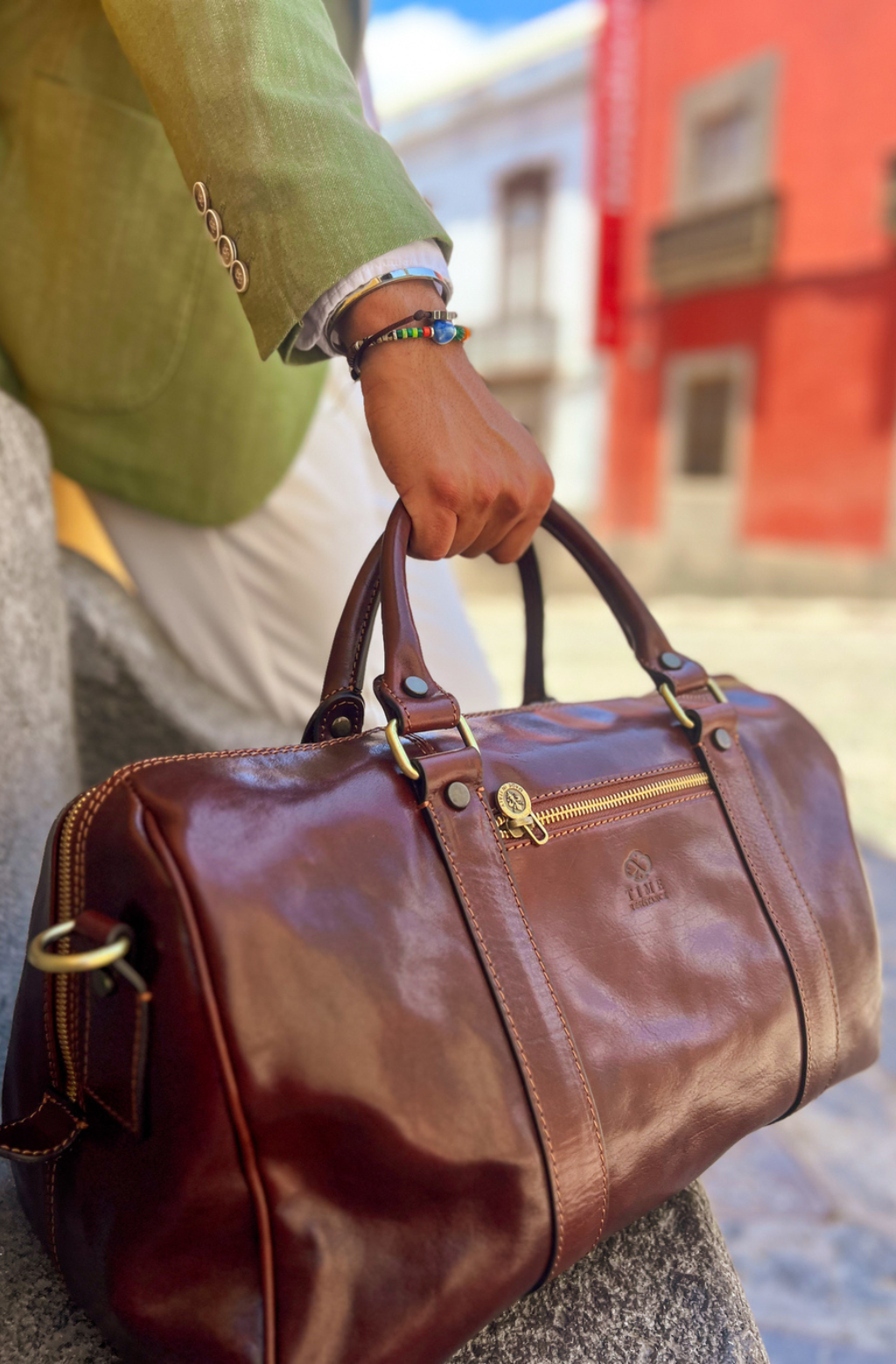 Exterior fabricado de cuero vacuno de plena flor (cuero Vachetta) que le durará por décadas