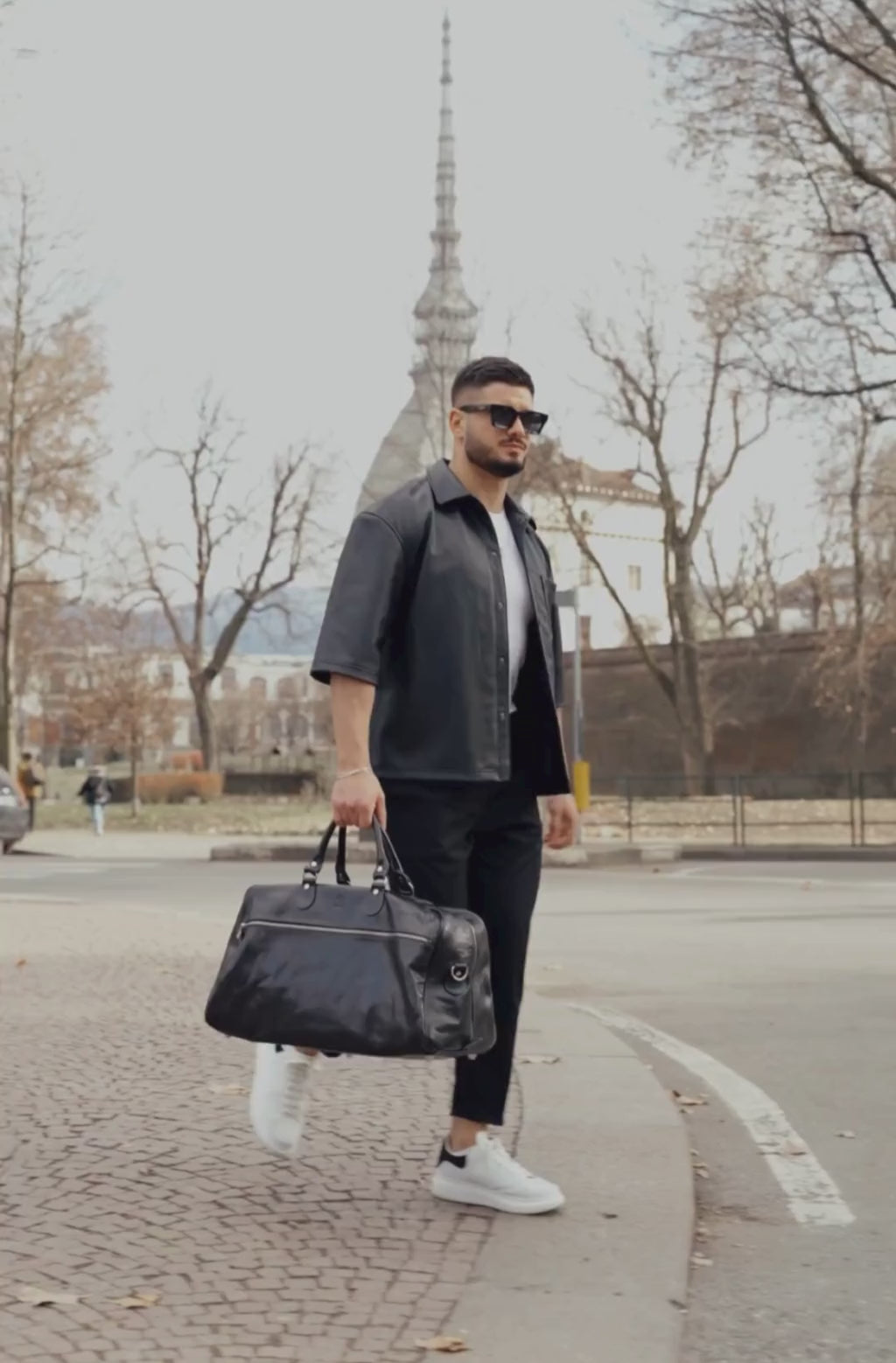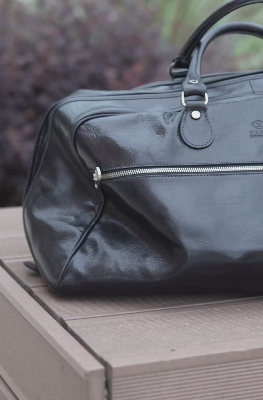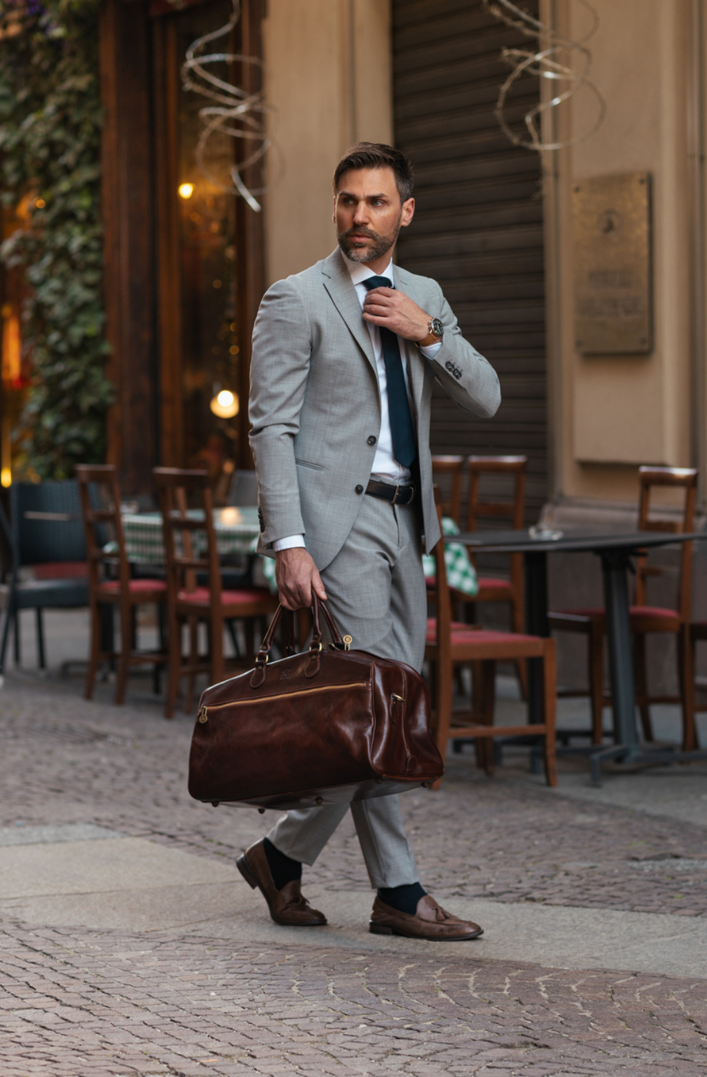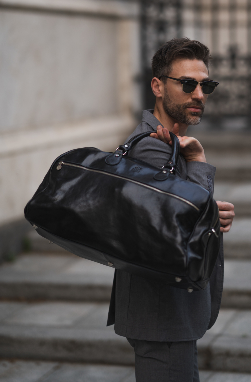 Una bolsa de viaje de cuero que combina el diseño de siempre con las necesidades de la vida moderna. Suficientemente espaciosa para acompañarle en una escapada de fin de semana, un viaje de negocios corto o para servir como bolsa de viaje cuando no está seguro de lo que le deparará la noche.