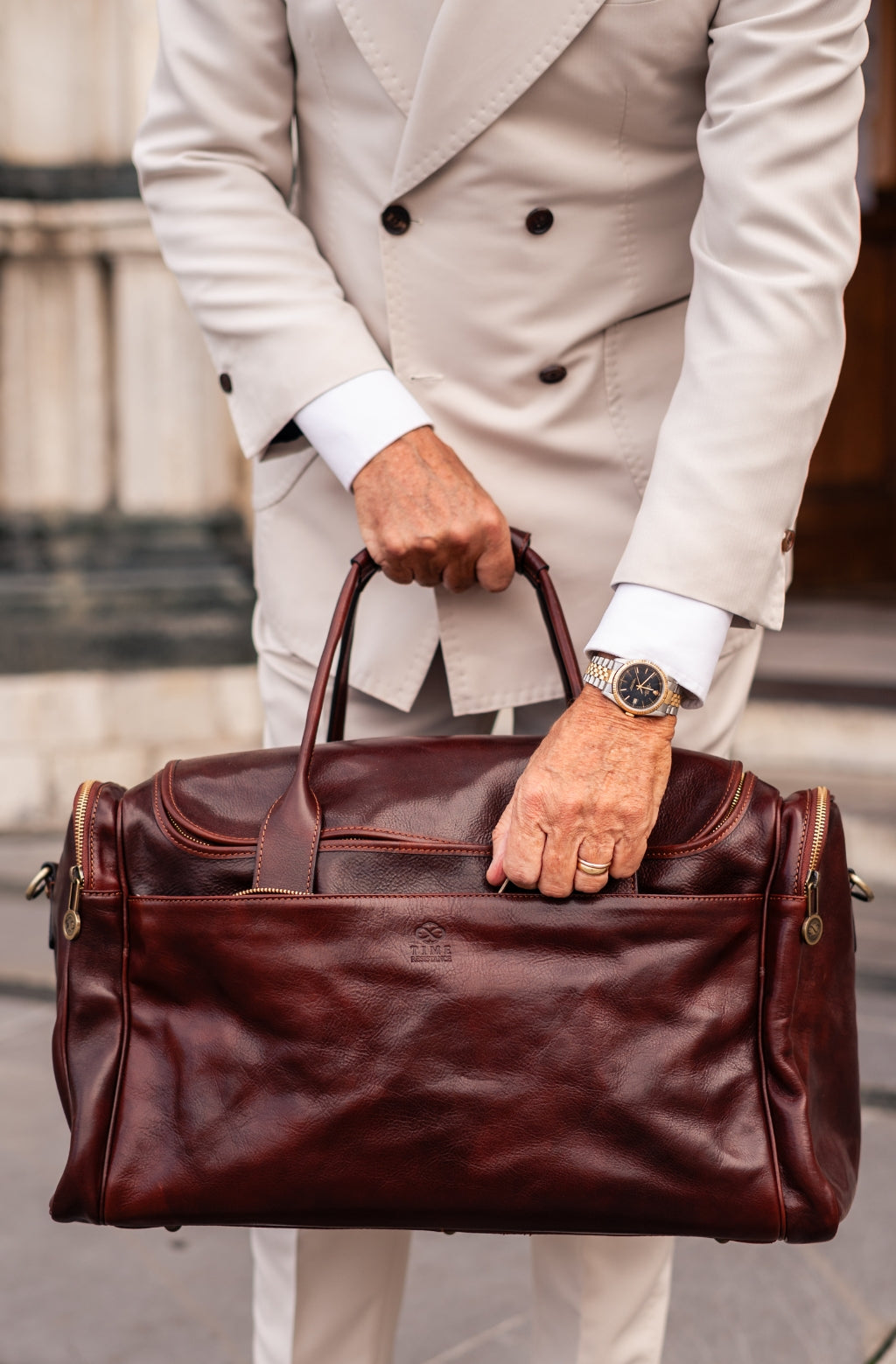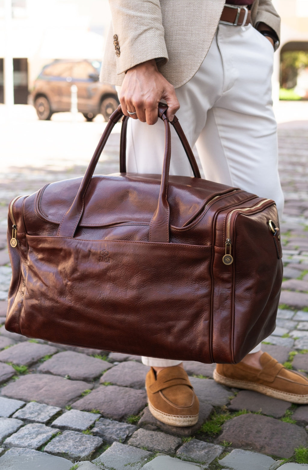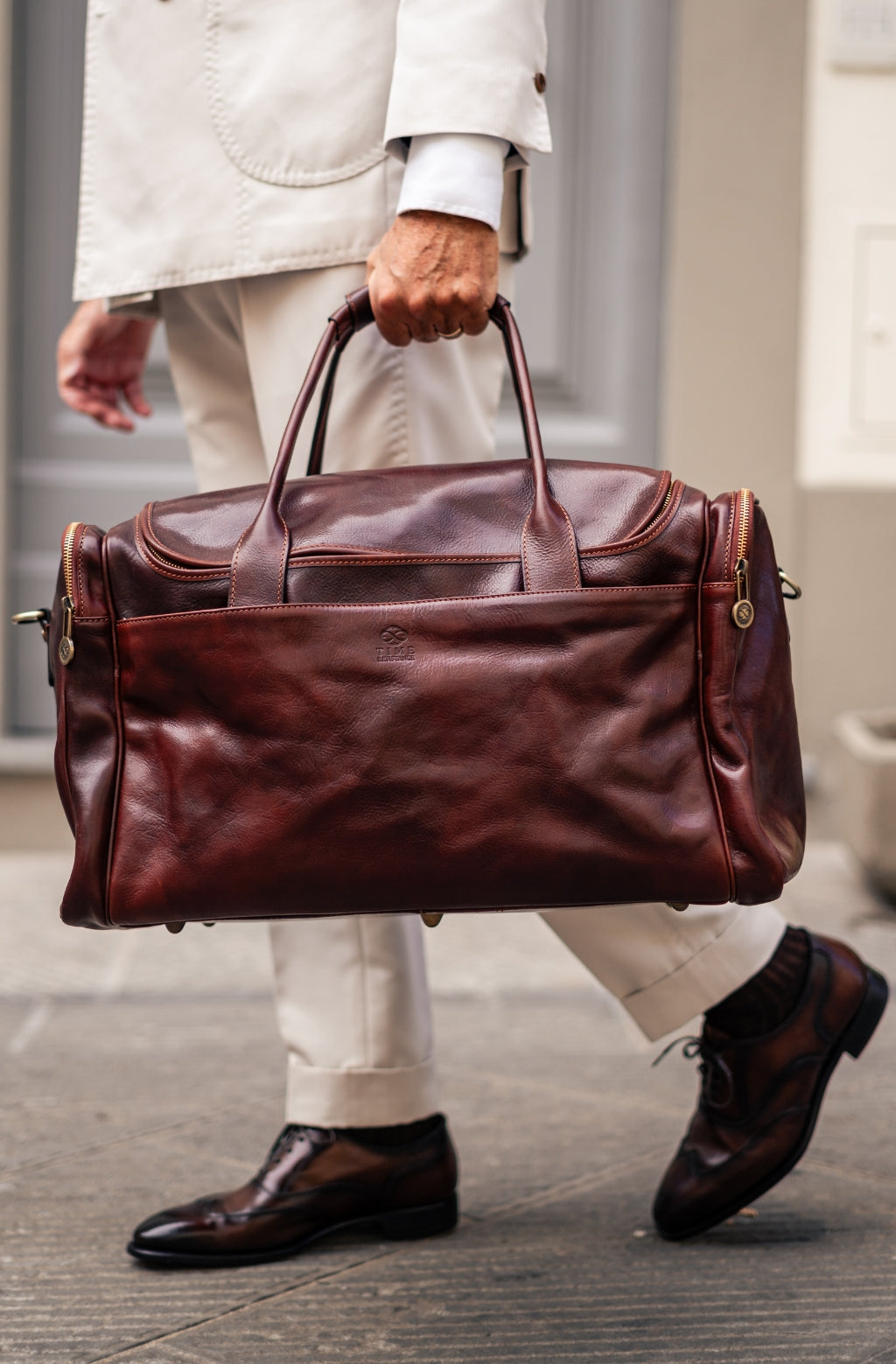 Time Resistance trabaja cuero italiano Vachetta: plena flor, curtido vegetal y teñido a mano. Con el uso adquiere una pátina elegante y única.