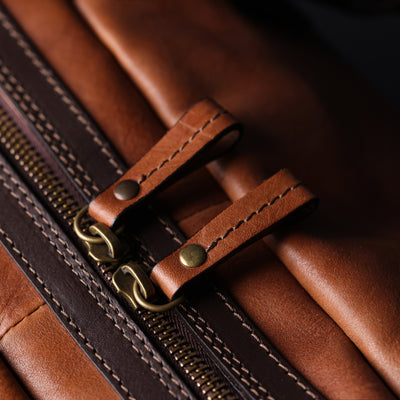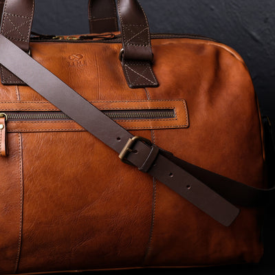 Time Resistance trabaja cuero italiano Vachetta: plena flor, curtido vegetal y teñido a mano. Con el uso adquiere una pátina elegante y única.