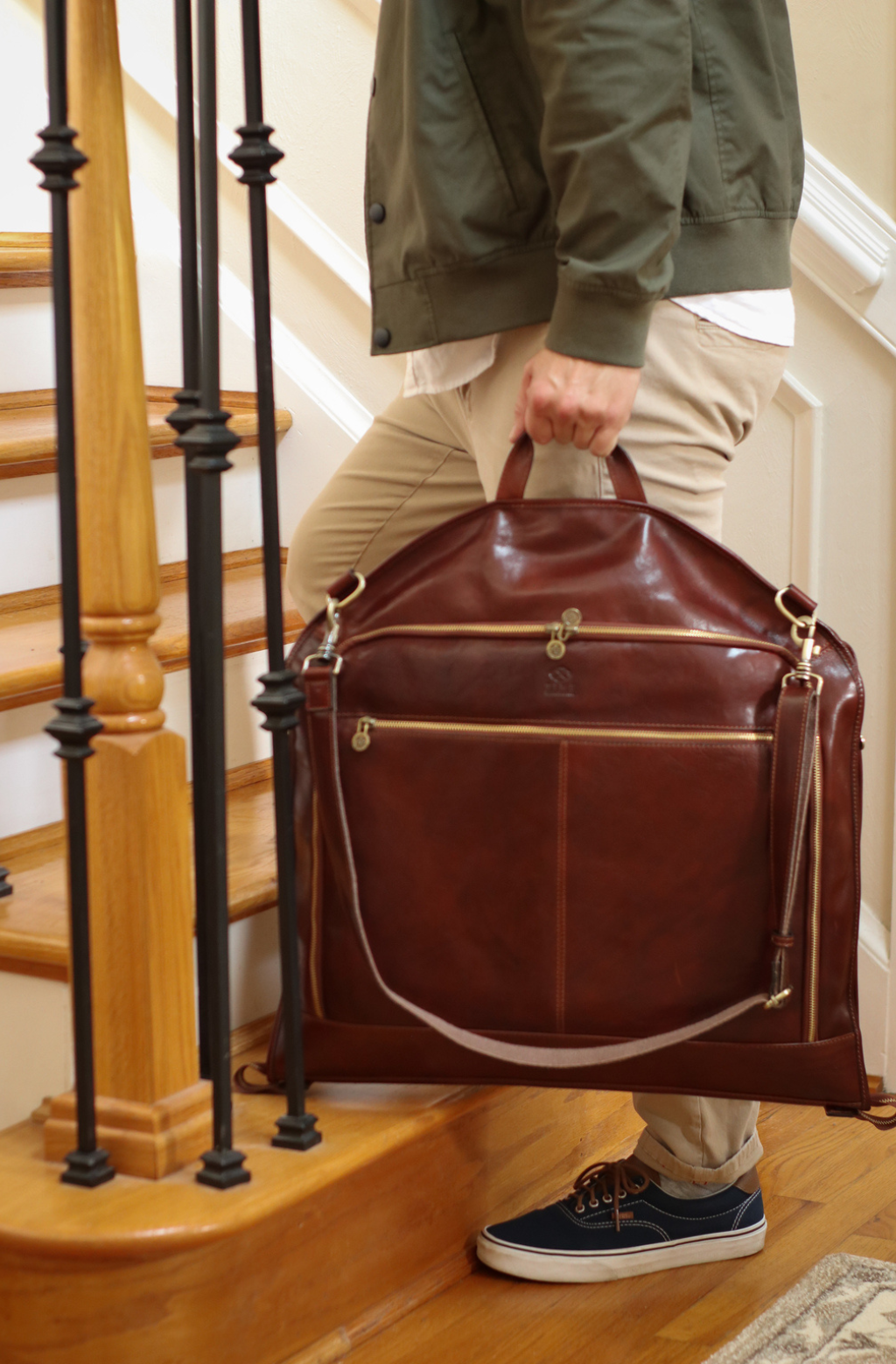 Llame la atención con un elegante compañero de viaje para caballero, con espacio suficiente para al menos 2 trajes. Ahora puede viajar con un traje sin arrugas y no tener que llevarlo por separado. Perfecta de principio a fin, esta bolsa portatrajes de cuero de plena flor le hará destacar en cada viaje de negocios.