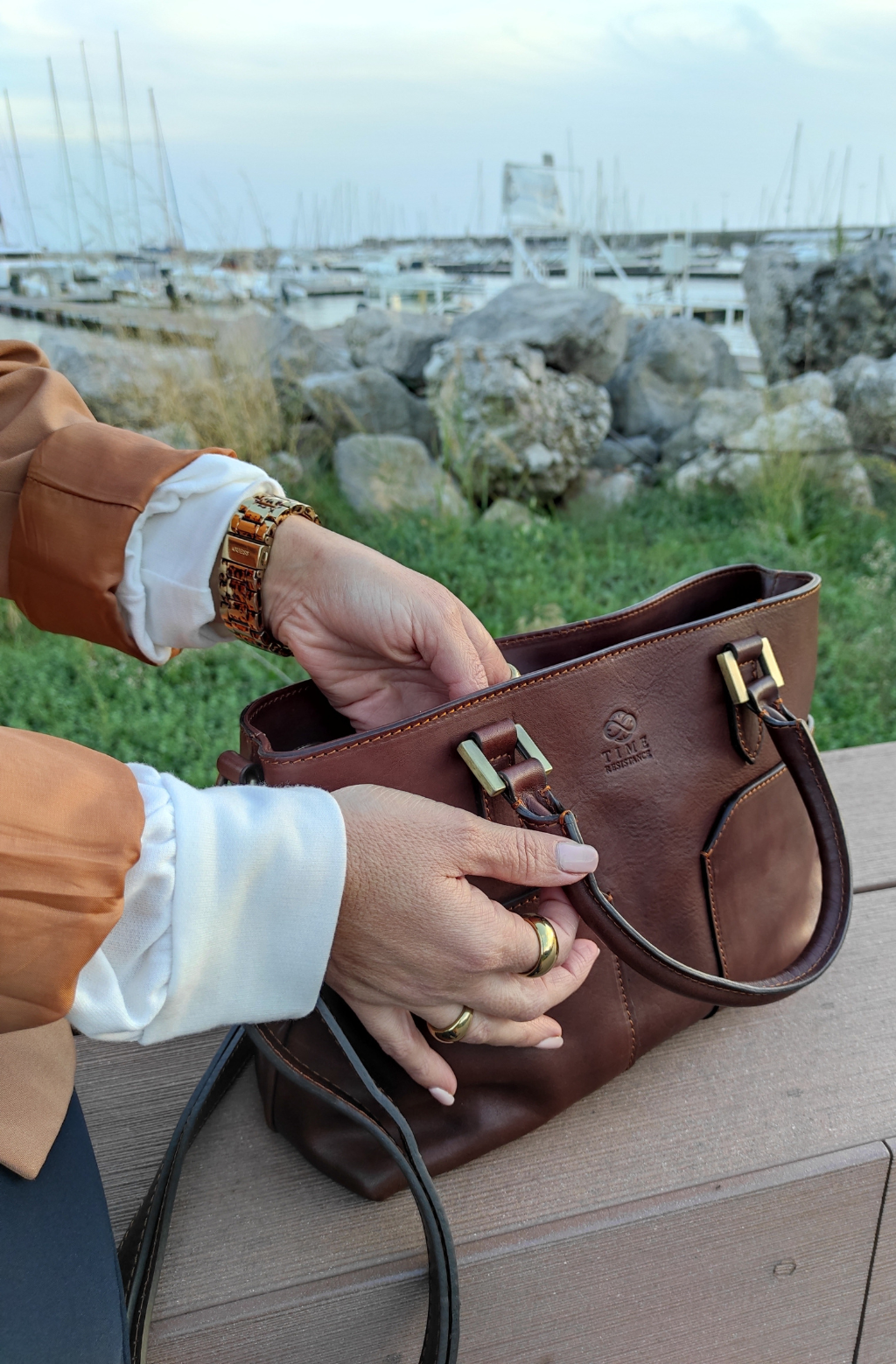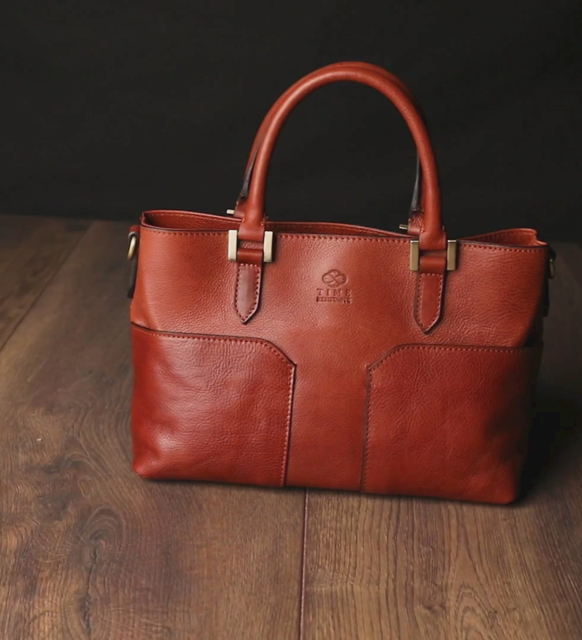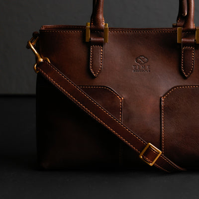 Time Resistance trabaja cuero italiano Vachetta: plena flor, curtido vegetal y teñido a mano. Con el uso adquiere una pátina elegante y única.