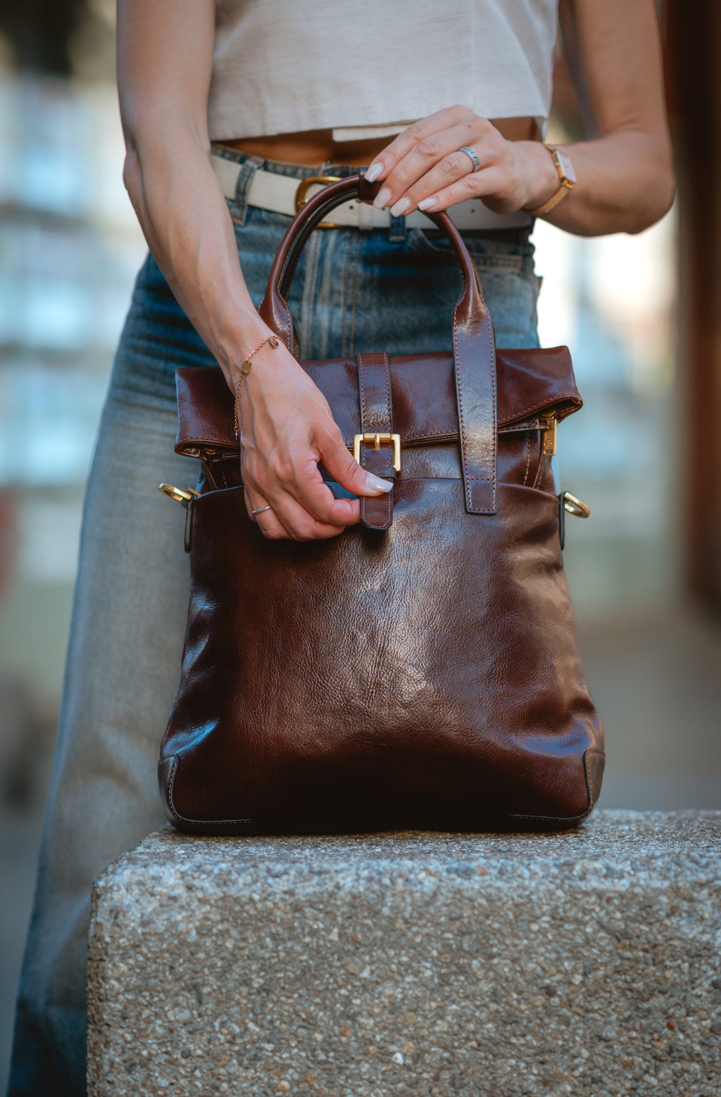 Time Resistance trabaja cuero italiano Vachetta: plena flor, curtido vegetal y teñido a mano. Con el uso adquiere una pátina elegante y única.