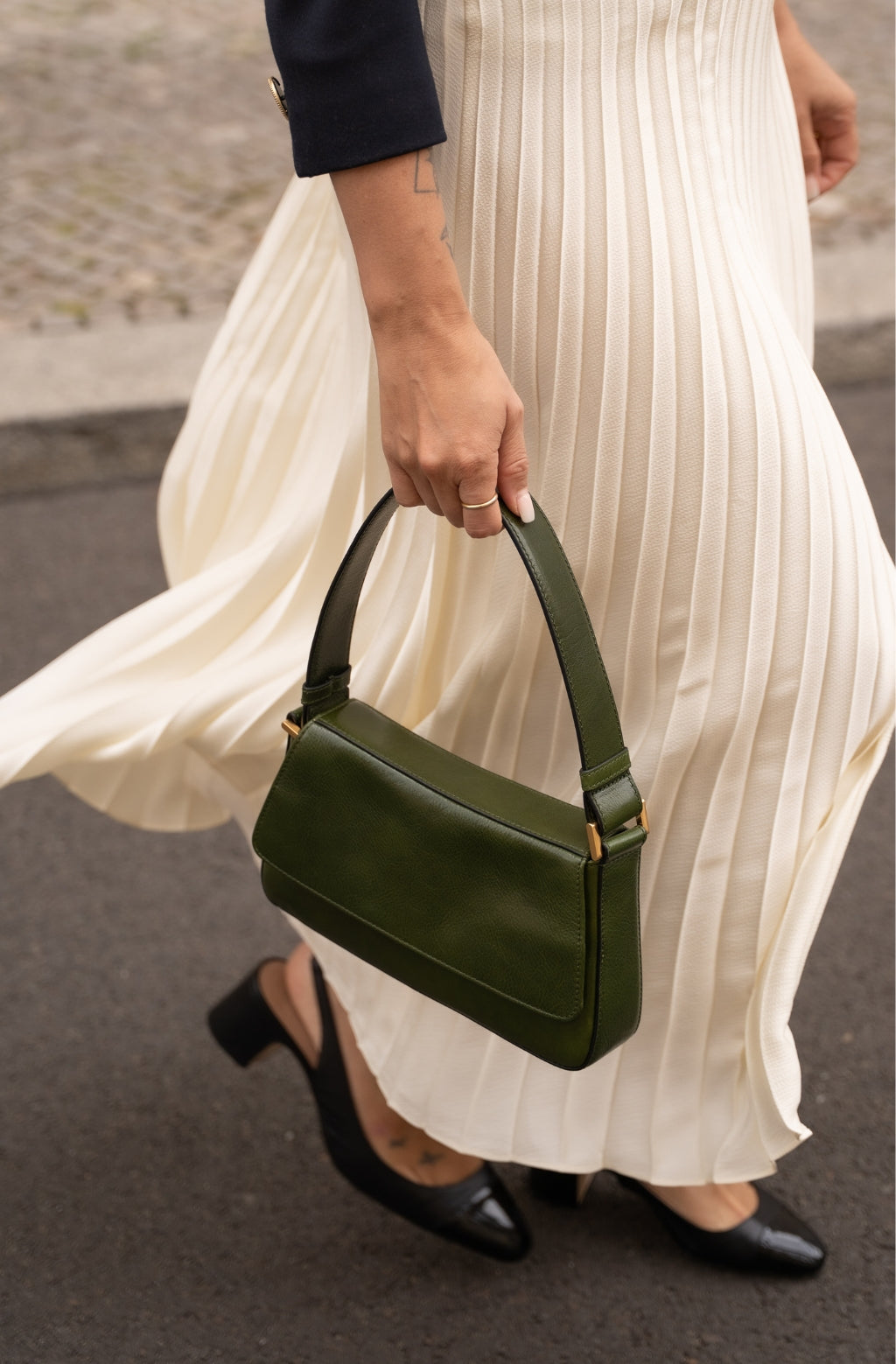 Presentamos el bolso de mano «Bright Lights, Big City», epítome del encanto metropolitano. Elaborado con precisión, este accesorio de cuero luce una silueta elegante y alargada, que destila sofisticación y modernidad. Su diseño minimalista, caracterizado por líneas limpias y una solapa elegante con cierre magnético, captura la esencia de la elegancia urbana. La robusta asa de hombro, unida al bolso por dos piezas metálicas, no solo proporciona comodidad, sino que añade un toque adicional de lujo y sofisticación. Ilumine sus aventuras urbanas con el discreto refinamiento del bolso de mano de cuero «Bright Lights, Big City».