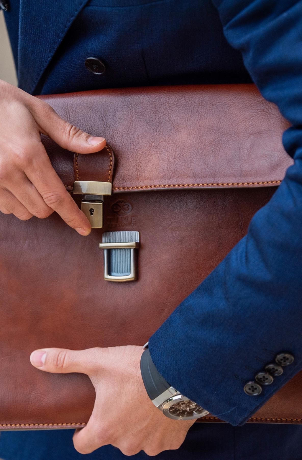 Time Resistance trabaja cuero italiano Vachetta: plena flor, curtido vegetal y teñido a mano. Con el uso adquiere una pátina elegante y única.