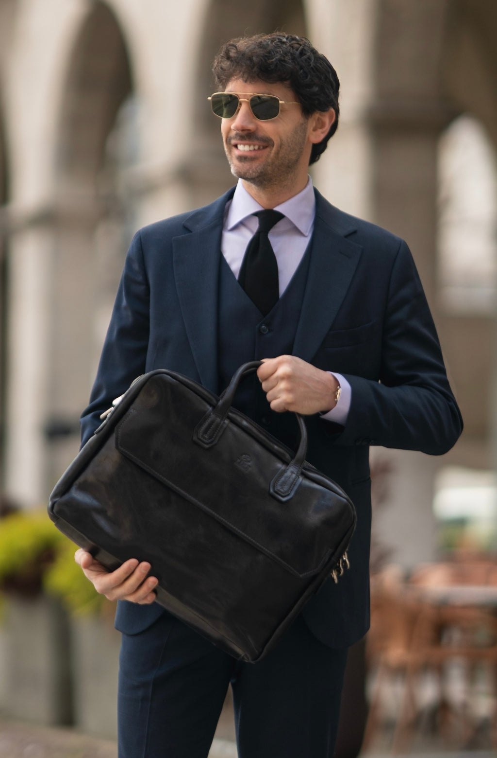 En un gran maletín de cuero Nostromo cabe todo lo que necesita. Fabricado a mano en cuero italiano de plena flor, el maletín, que trae una correa y una correa desmontable para el hombro, es el compañero ideal para viajar. En sus dos espaciosos compartimentos puede colocar hojas de papel tamaño legal, documentos tamaño A4 y carpetas. Además, acomoda con seguridad un portátil de 17 pulgadas y una tableta, ya que los bolsillos acolchados protegen de golpes y arañazos. El bolso de trabajo tiene varios bolsillos abiertos y uno grande con cremallera en el interior. Por si eso no fuera suficiente, hemos creado un bolsillo adicional con solapa en la parte delantera y un bolsillo abierto con cierre magnético extrafuerte en la parte posterior, ideal para mantener sus objetos esenciales fácilmente accesibles.