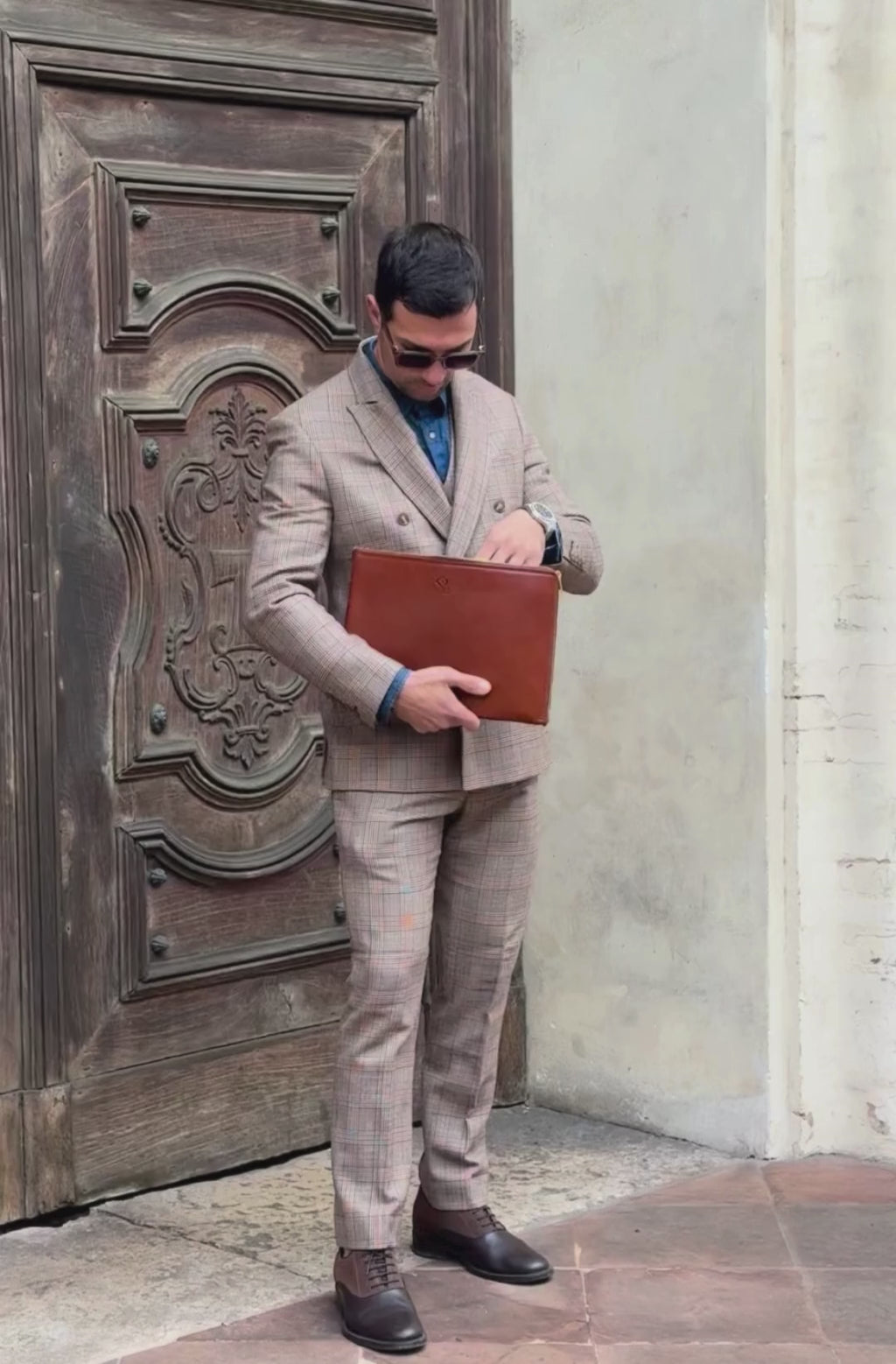 Bolso pequeño/cartera de mano varonil de cuero italiano. Diseño minimalista, perfecto para quienes gustan de la sencillez sin renunciar a la elegancia. En él caben todos sus objetos esenciales de uso diario, incluido un smartphone, una tableta pequeña, entre otros, y luce un aspecto profesional con un toque de elegancia de sastrería.