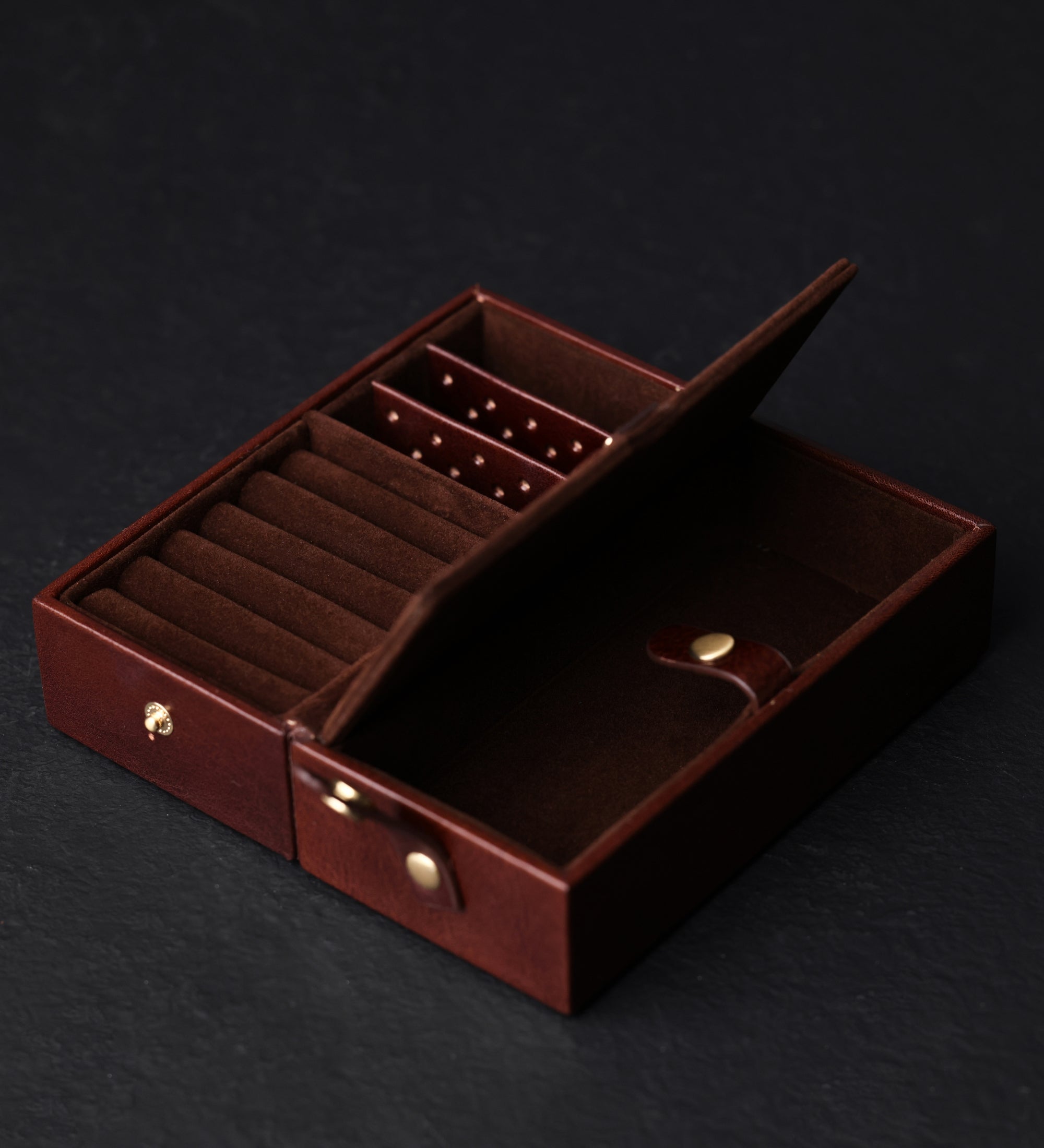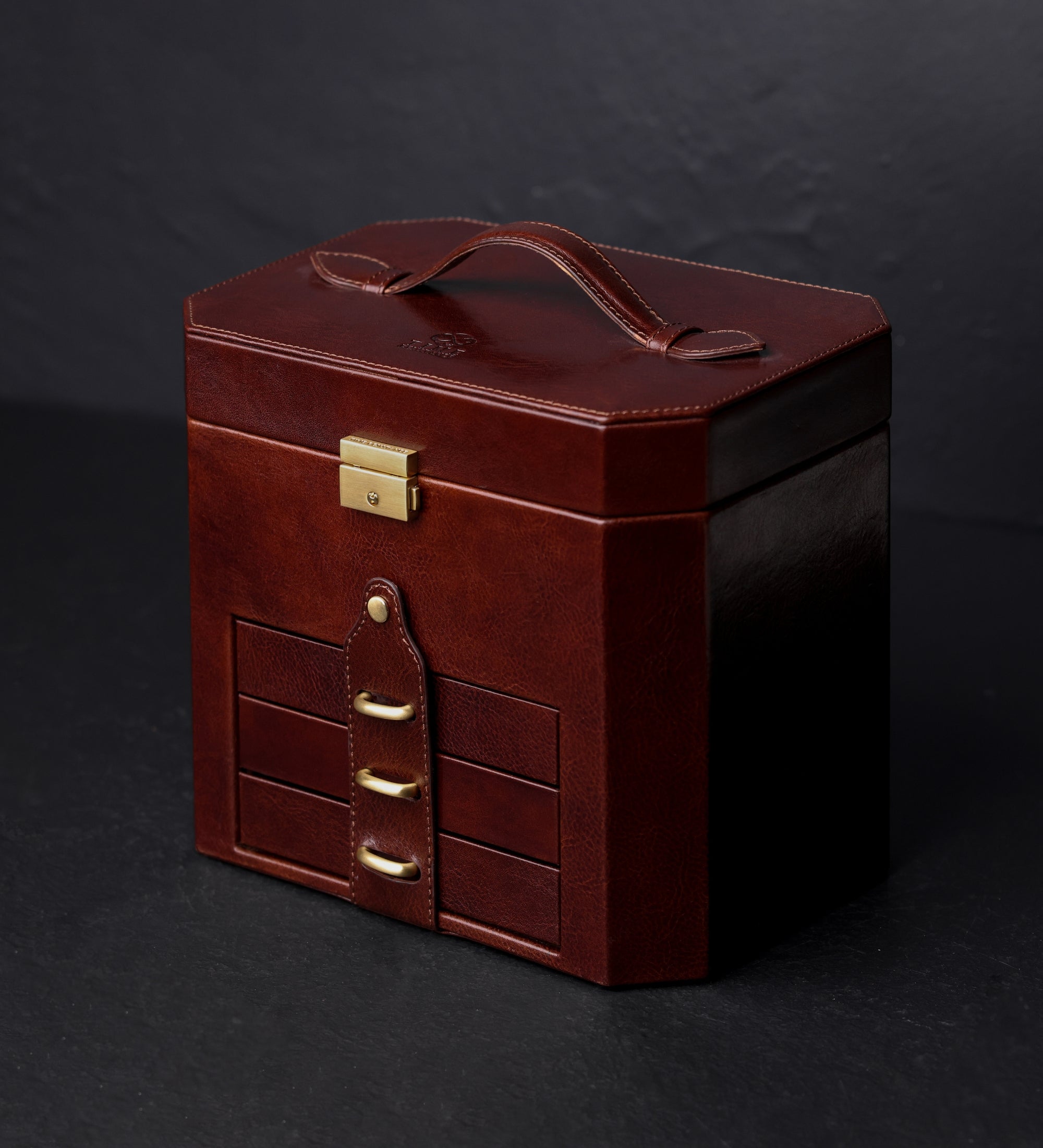 I bought a dark blue, large leather jewelry box for Christmas and I love it. Infact I was so pleased with it that I decided to buy a second one in another colour for a different bedroom but, sadly, there were no more on line. I am hoping they will come back in the new year. I can thoroughly recommend it. Very good quality item.