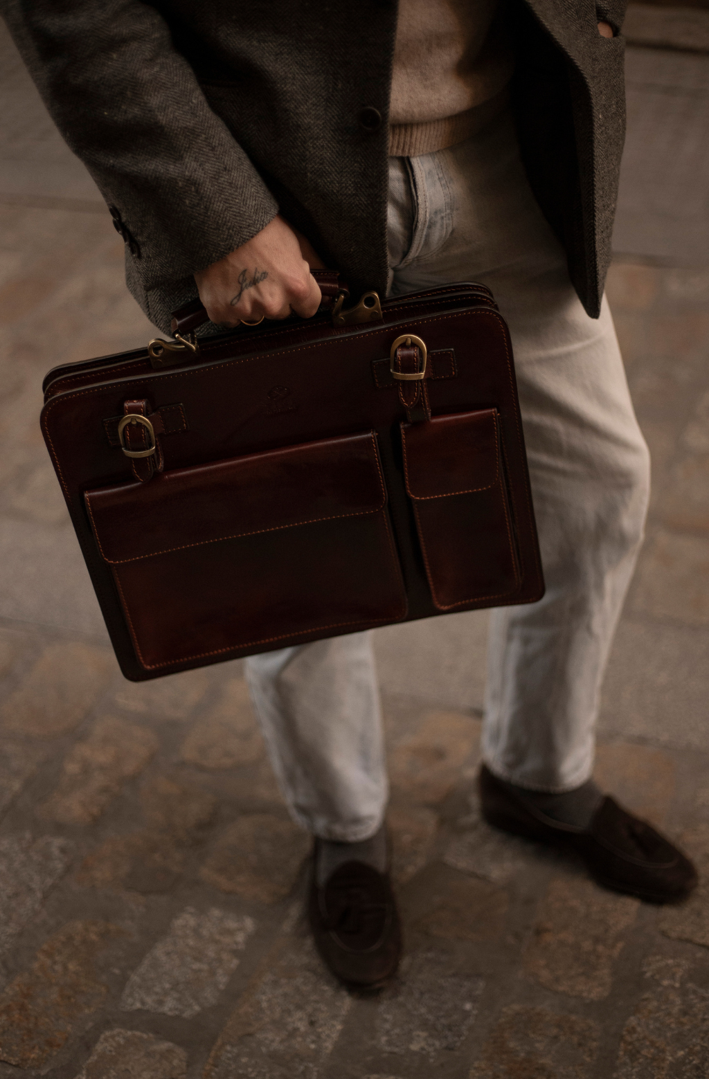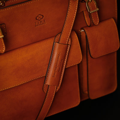 Time Resistance trabaja cuero italiano Vachetta: plena flor, curtido vegetal y teñido a mano. Con el uso adquiere una pátina elegante y única.