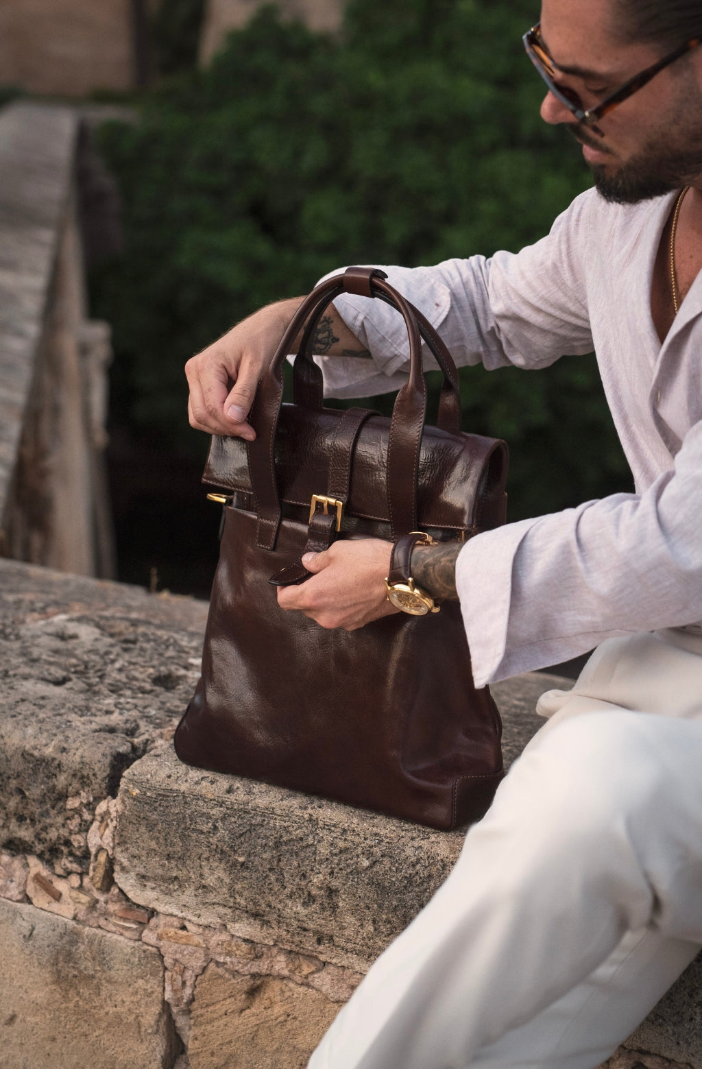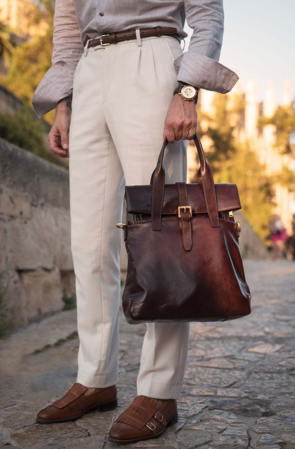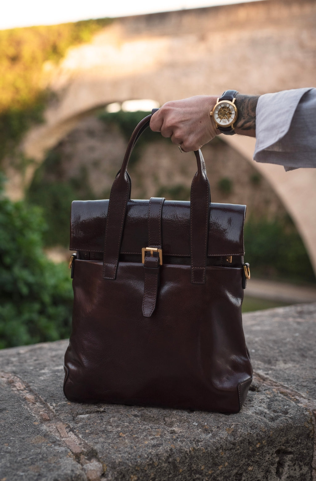 Time Resistance trabaja cuero italiano Vachetta: plena flor, curtido vegetal y teñido a mano. Con el uso adquiere una pátina elegante y única.