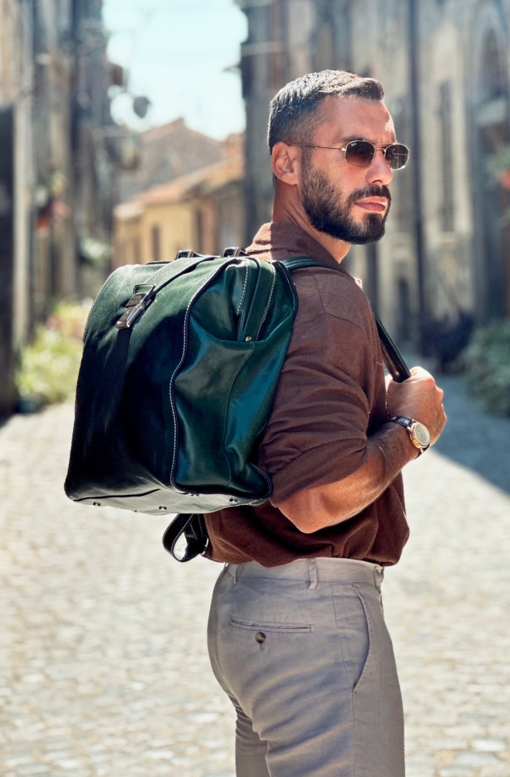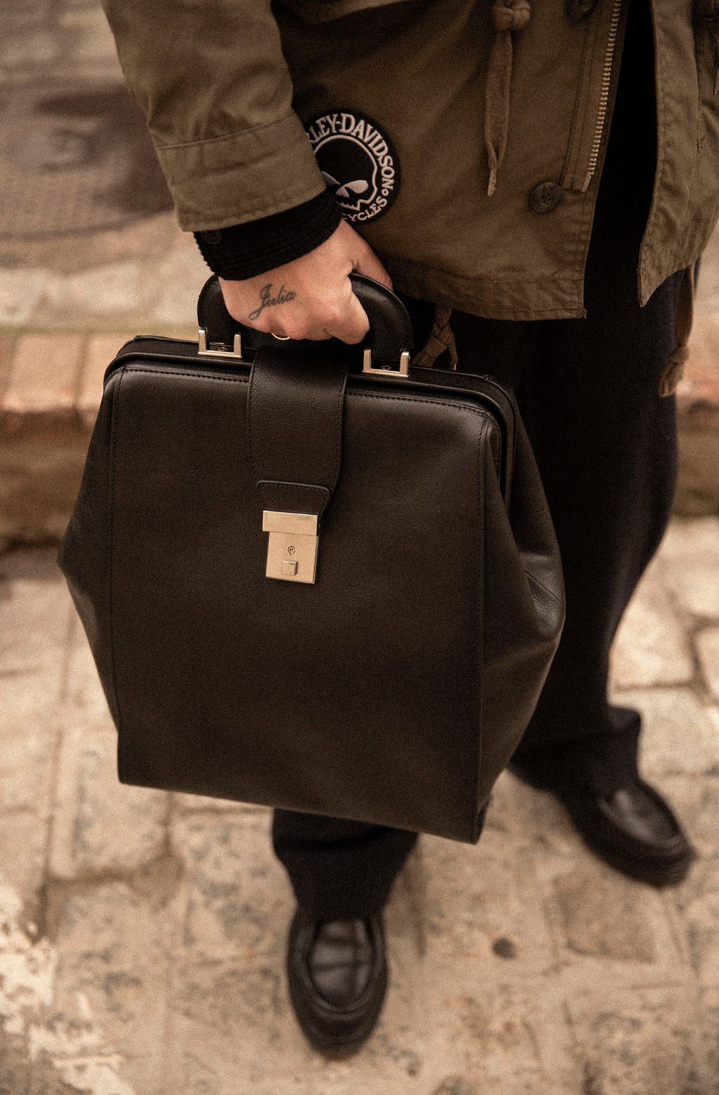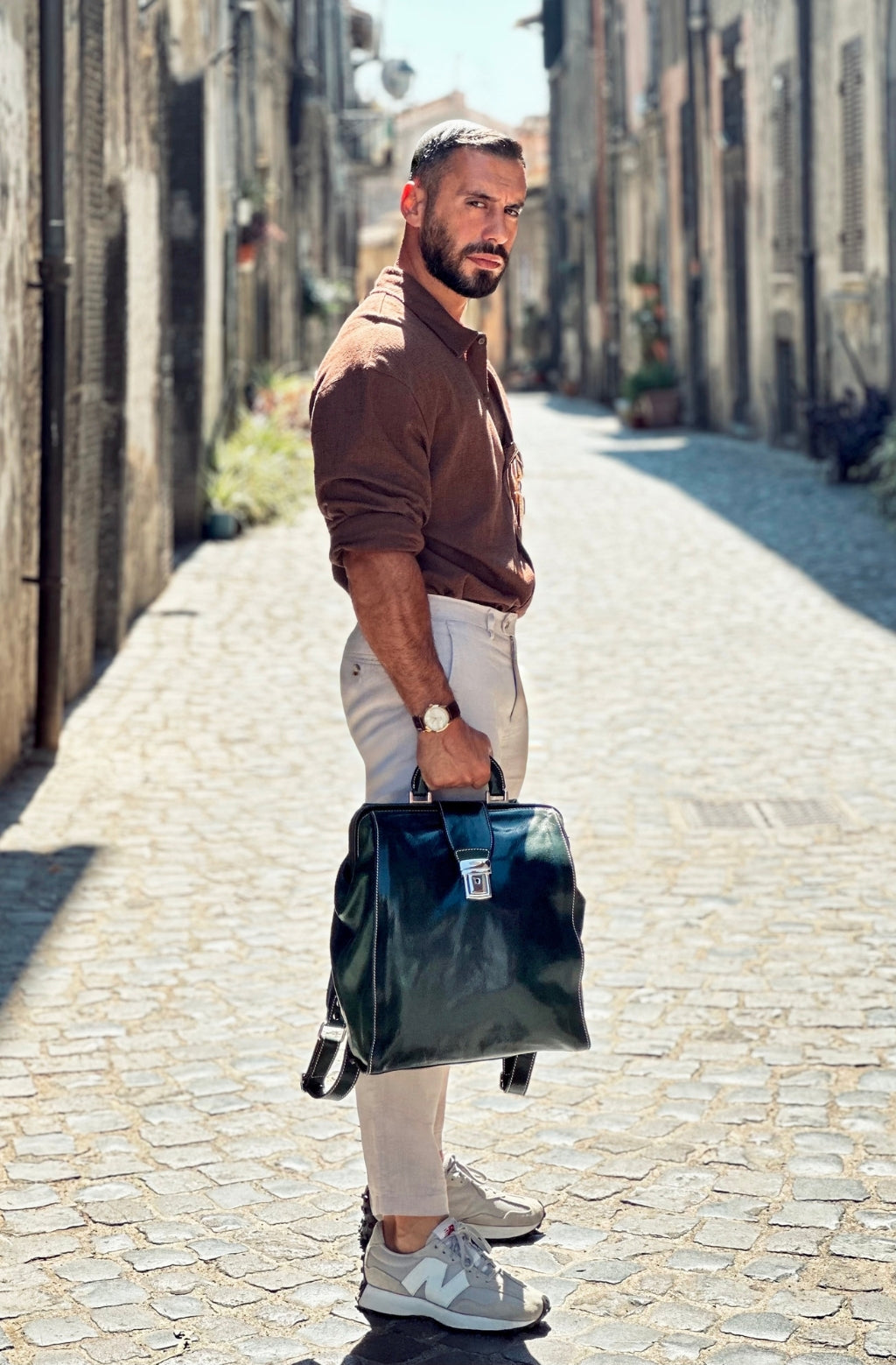 Time Resistance trabaja cuero italiano Vachetta: plena flor, curtido vegetal y teñido a mano. Con el uso adquiere una pátina elegante y única.
