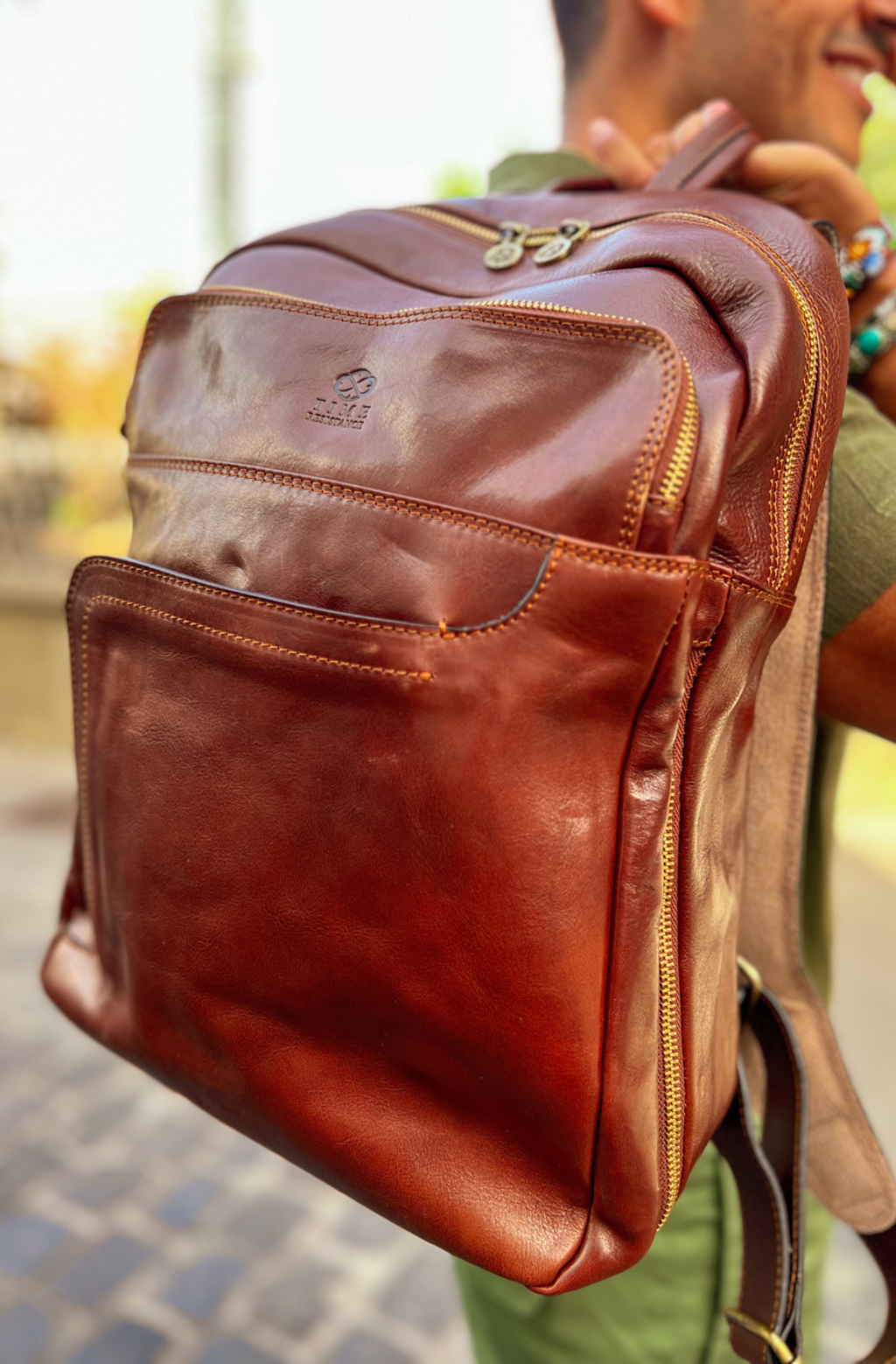 Time Resistance trabaja cuero italiano Vachetta: plena flor, curtido vegetal y teñido a mano. Con el uso adquiere una pátina elegante y única.
