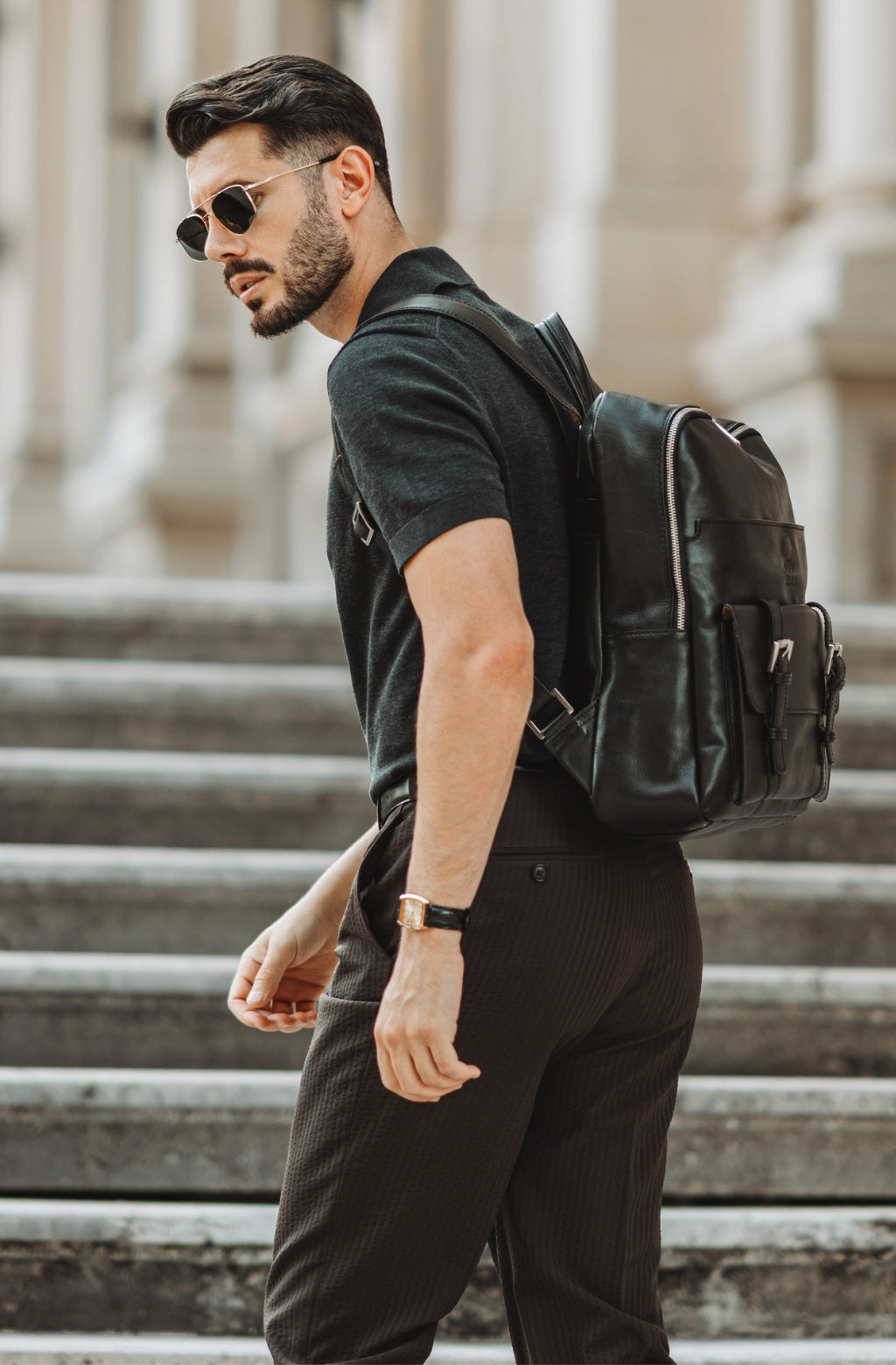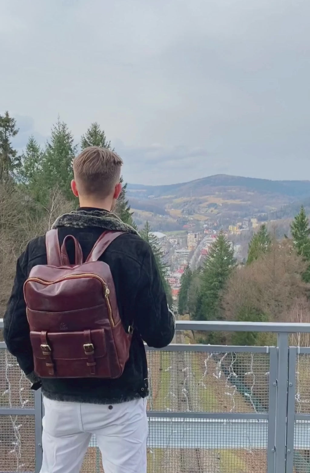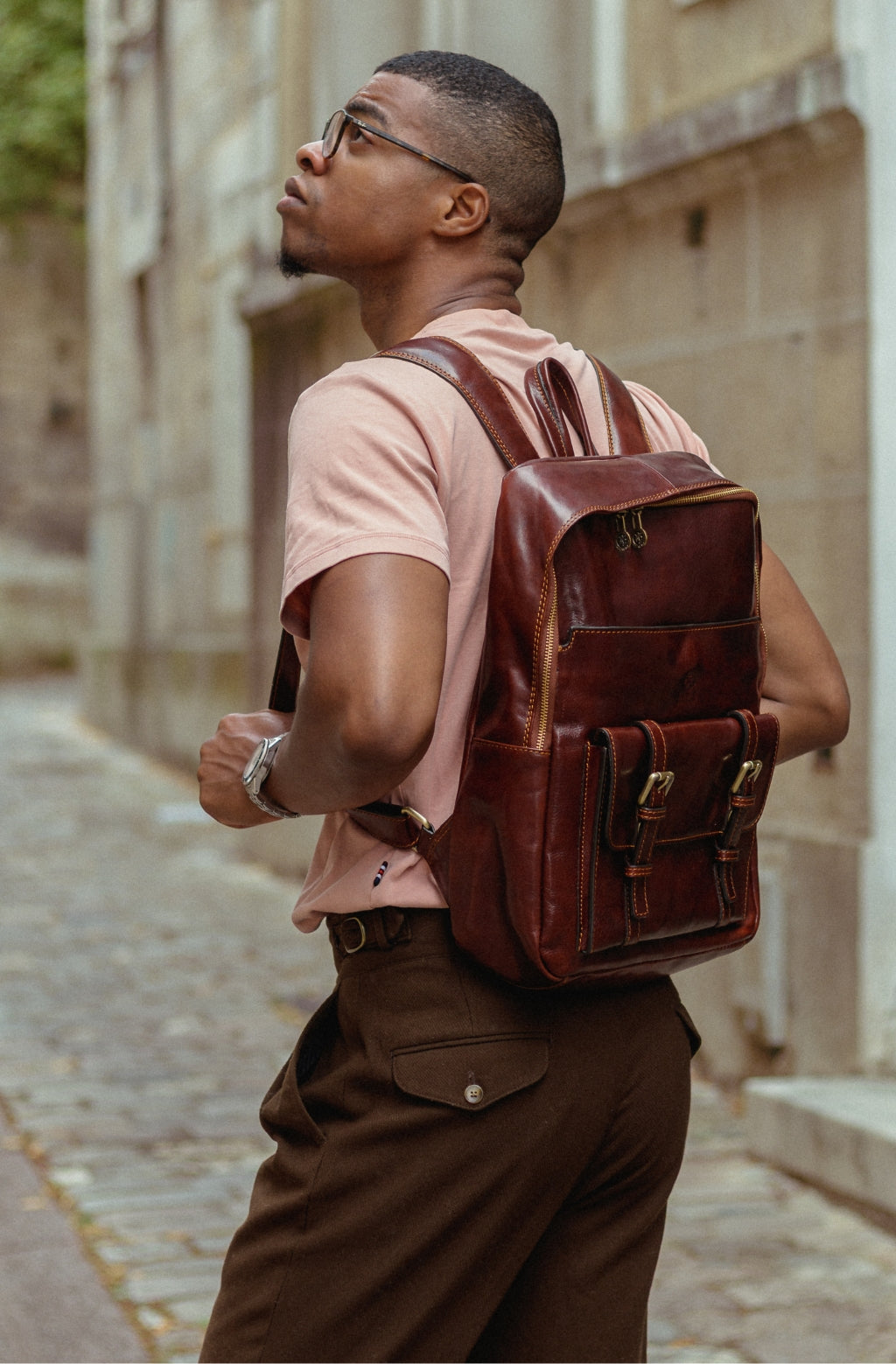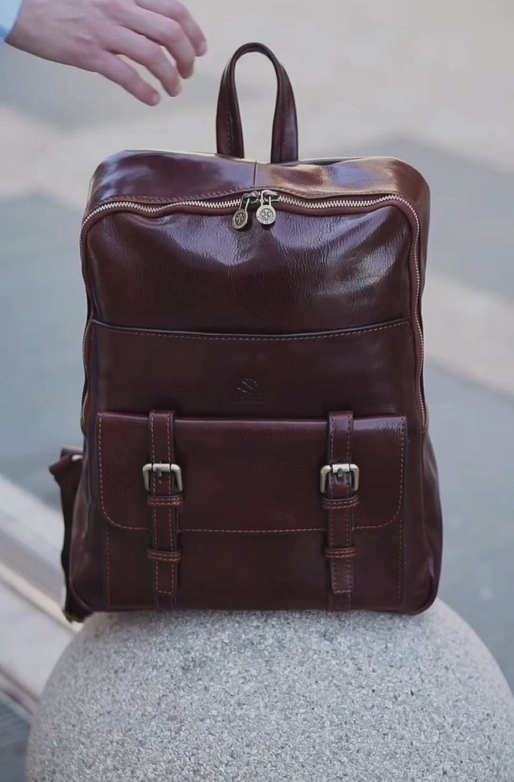Una mochila de cuero de plena flor que es a la vez elegante y práctica, con su gran capacidad y sus detalles pensados para mayor comodidad. La mejor elección para viajeros, profesionales y estudiantes.