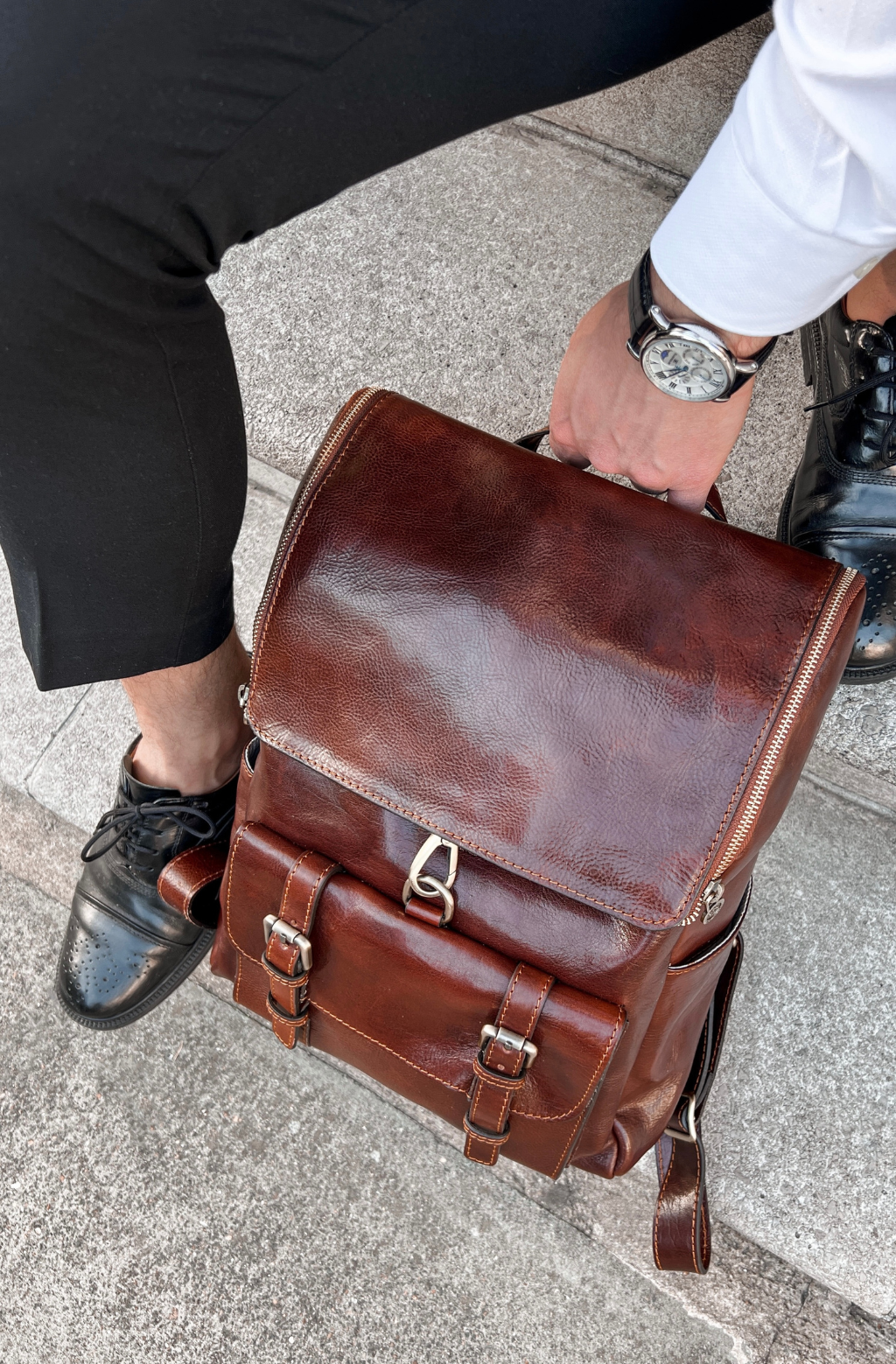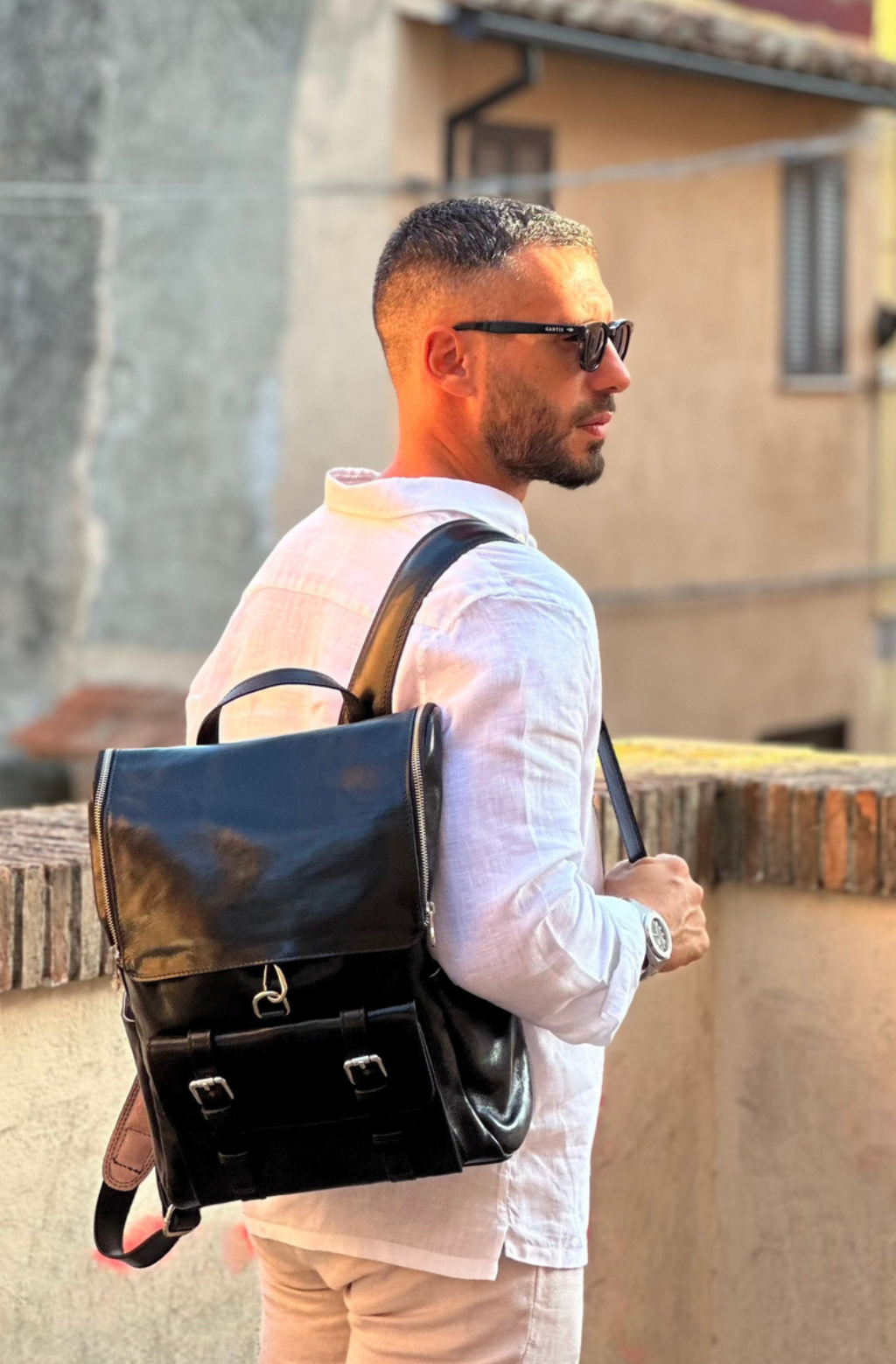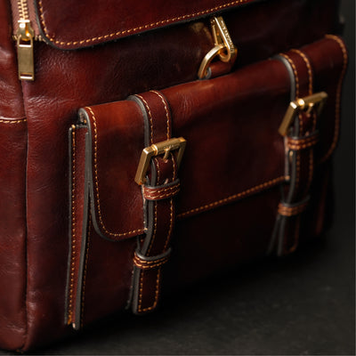 Time Resistance trabaja cuero italiano Vachetta: plena flor, curtido vegetal y teñido a mano. Con el uso adquiere una pátina elegante y única.