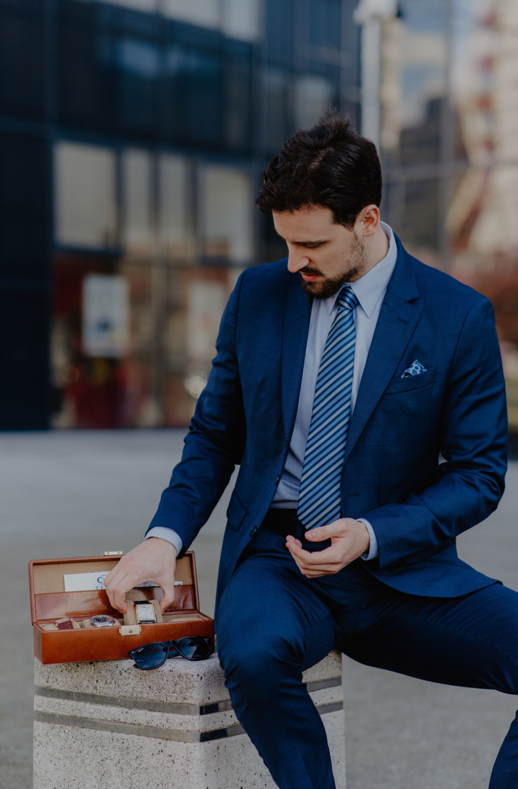 La caja para relojes Herzog mantiene sus relojes seguros y a salvo. Fabricado en cuero italiano de plena flor y terciopelo extrasuave, este organizador tiene ranuras para cuatro relojes. El bolsillo de cuero es perfecto para guardar varias correas de reloj o brazaletes. Un soporte para relojes de lujo puede ser un elegante accesorio en un tocador o puede proteger su preciada colección de relojes pulsera mientras viaja. La caja puede personalizarse con las iniciales de su ser querido o incluso con su frase favorita.