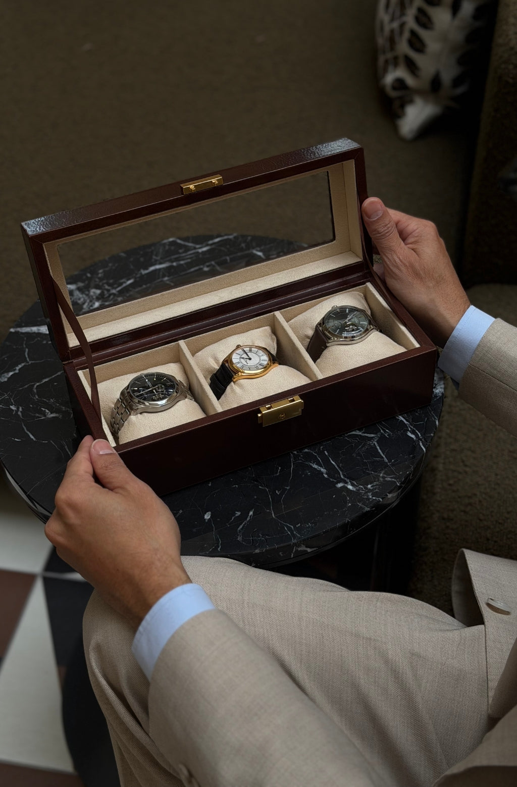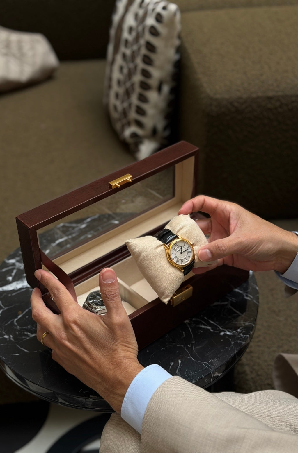Teñido a mano, capa a capa. El color se trabaja sobre el grano para lograr profundidad, calidez y matices irrepetibles.