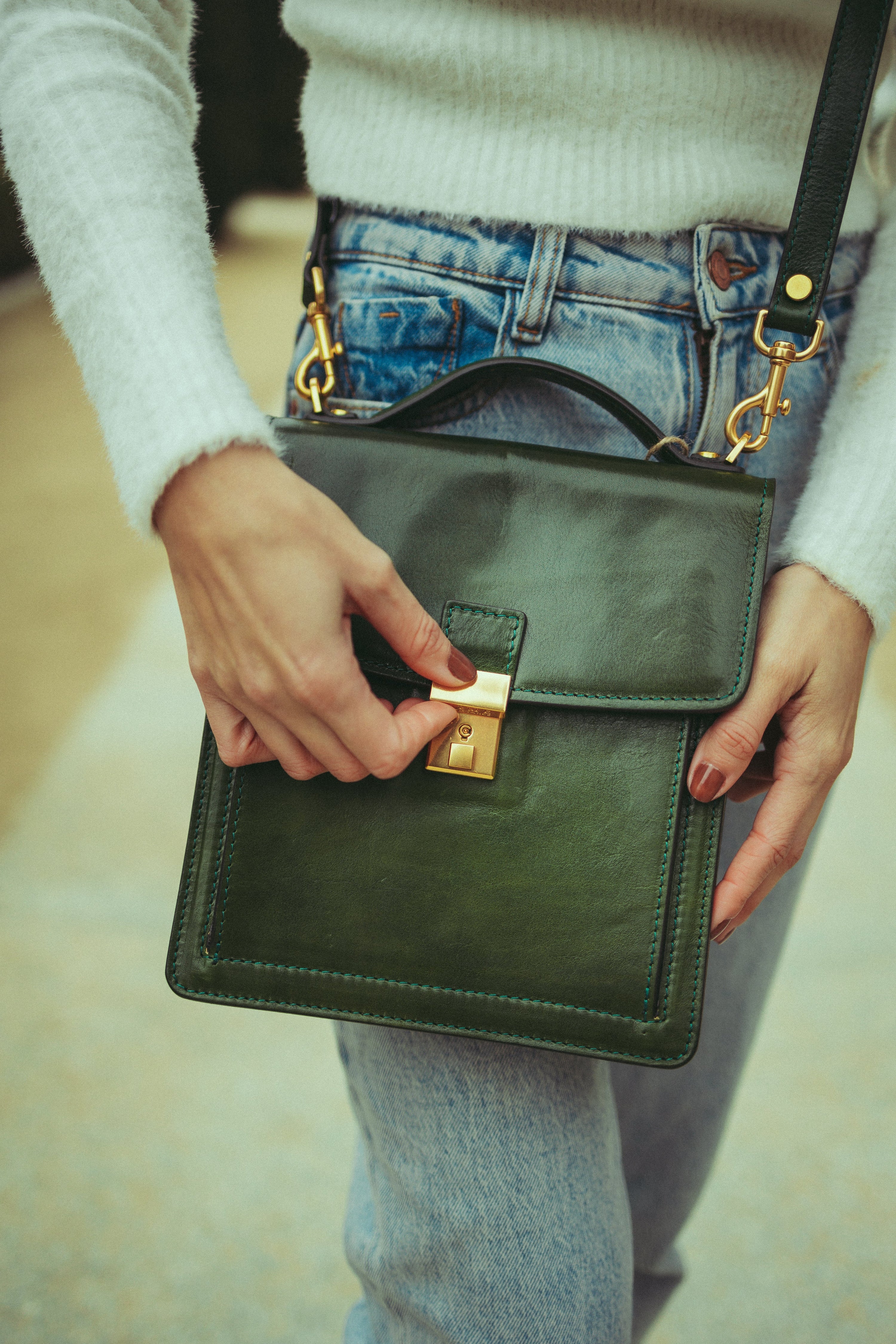 Teñido a mano, capa a capa. El color se trabaja sobre el grano para lograr profundidad, calidez y matices irrepetibles.